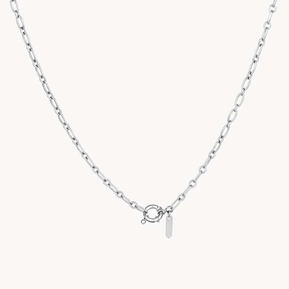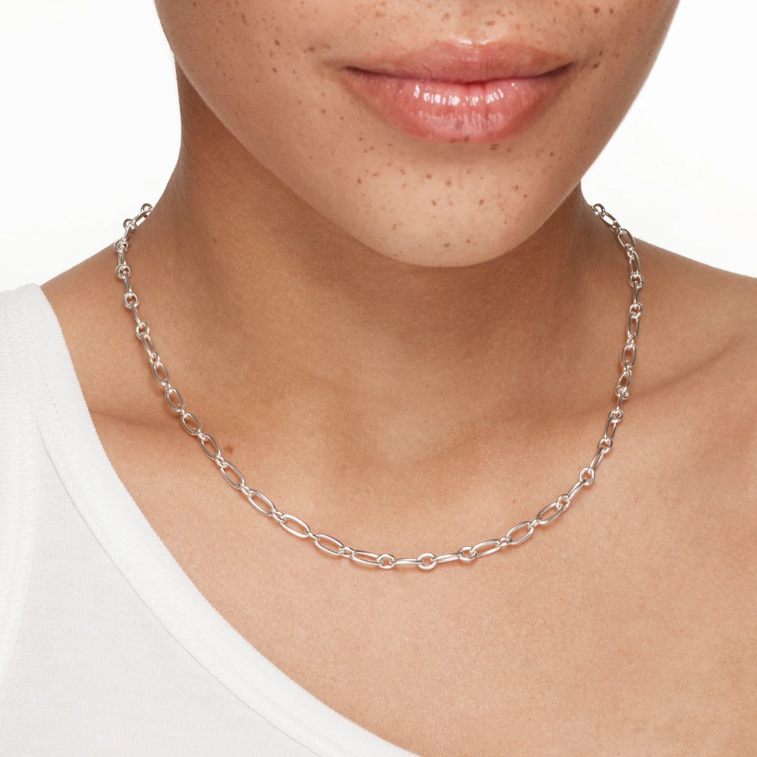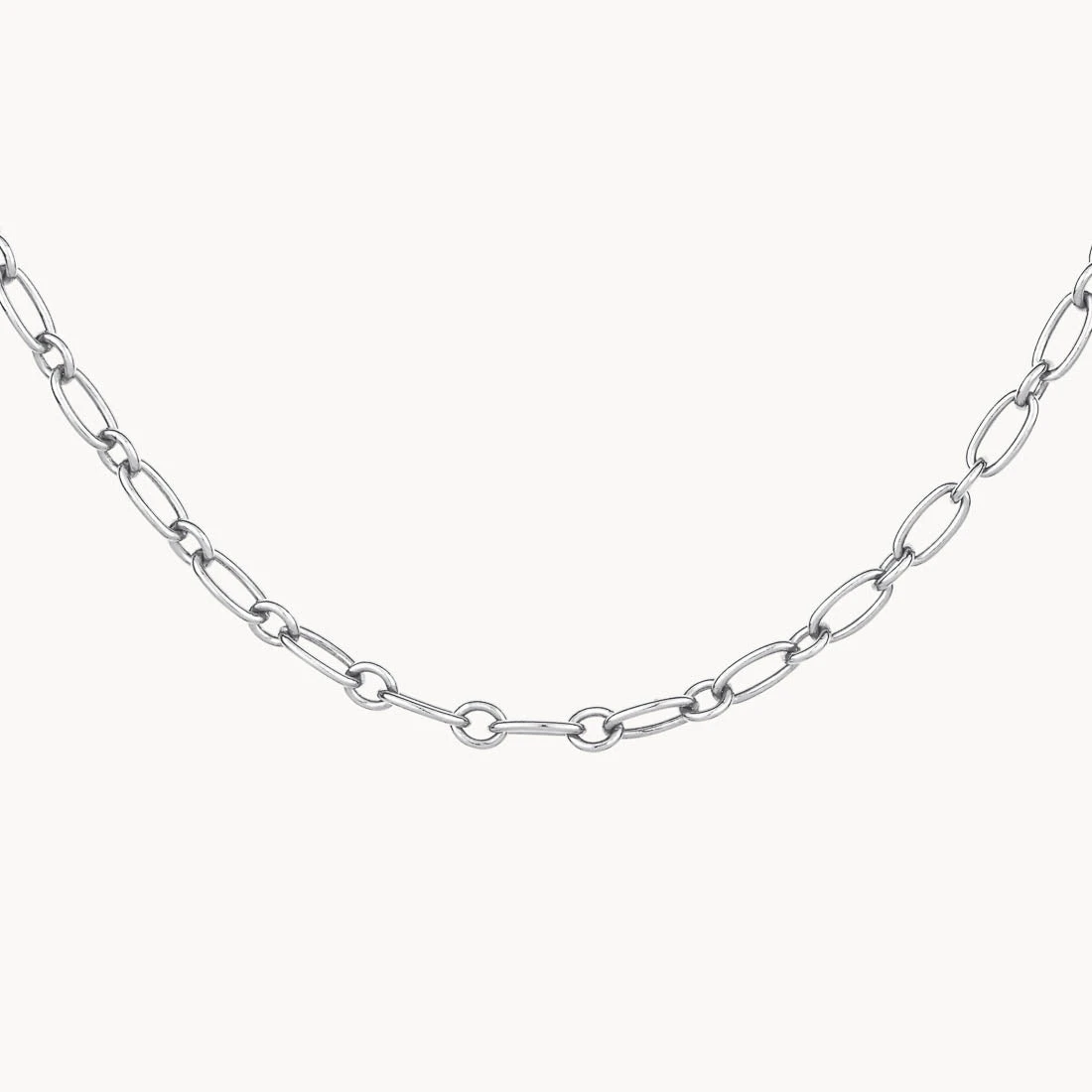 A classic sterling silver chain necklace to wear on repeat. This paperclip chain necklace is interspersed with alternating bolo chain links for a unique texture. With an 43cm length, wear it alone for a simple statement, or layer with your favourite silver chains.