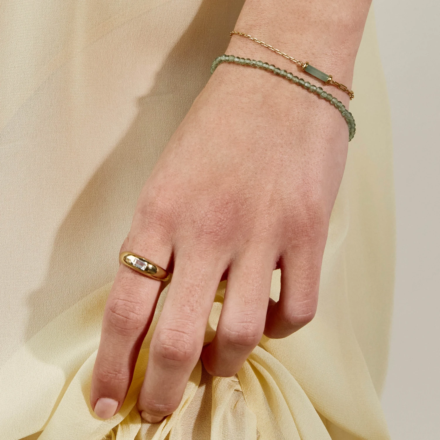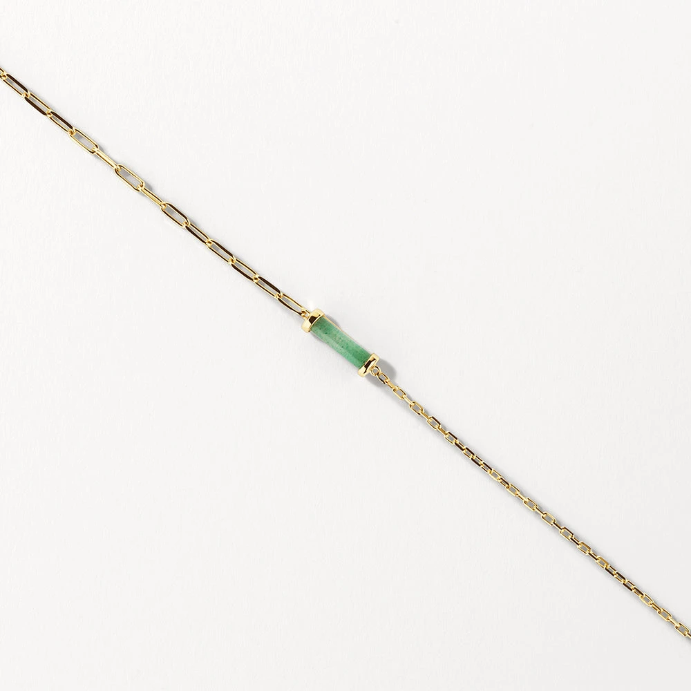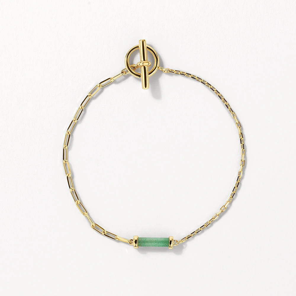 A unique, natural gemstone bracelet for your collection. Add a pop of colour with this half-and-half chain bracelet, blending a paperclip chain and belcher with a classic fob closure. Complete with a green aventurine crystal, a type of quartzite loved for its translucent green hue, wear this piece alone for a delicate statement, or layered with gold or a mix of gems.