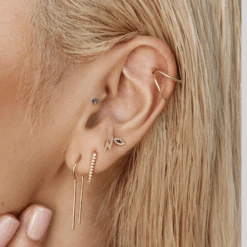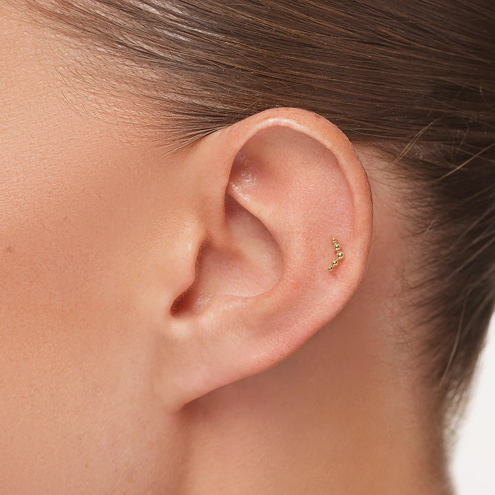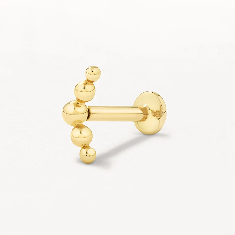 The perfect piece to add to every ear stack, our ball chevron stud is designed specially for your helix piercing. With a unique ball design in a chevron shape, this single cartilage piercing stud is timelessly crafted in conflict-free, recycled 10k gold. With a 6.5mm post length, it’s sold as a single earring. Also available with an 8mm length.