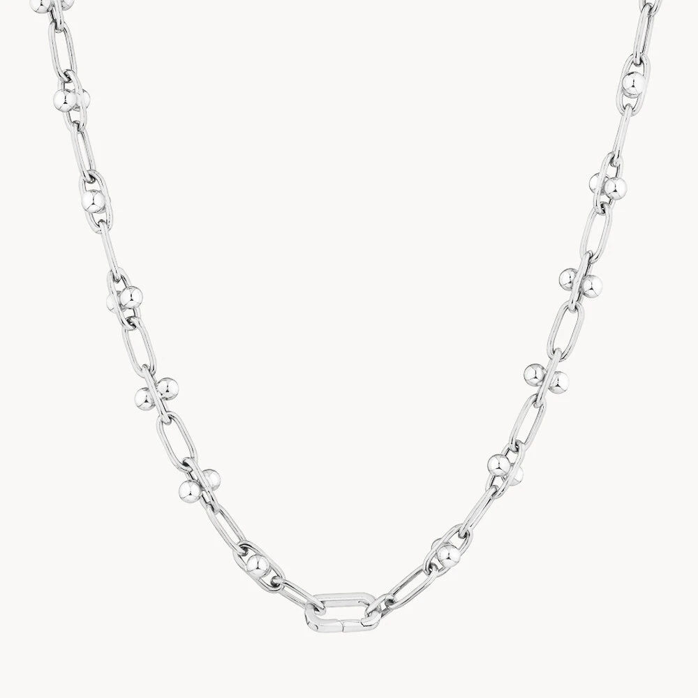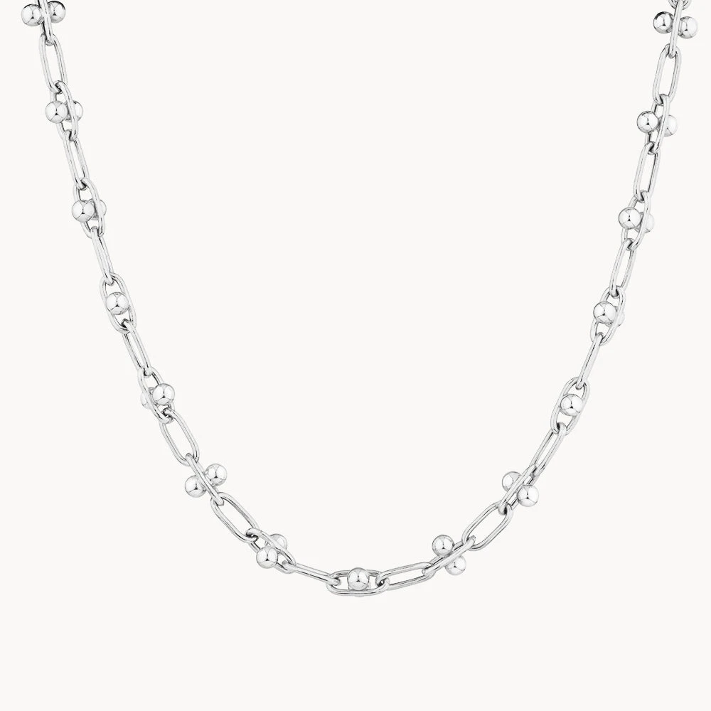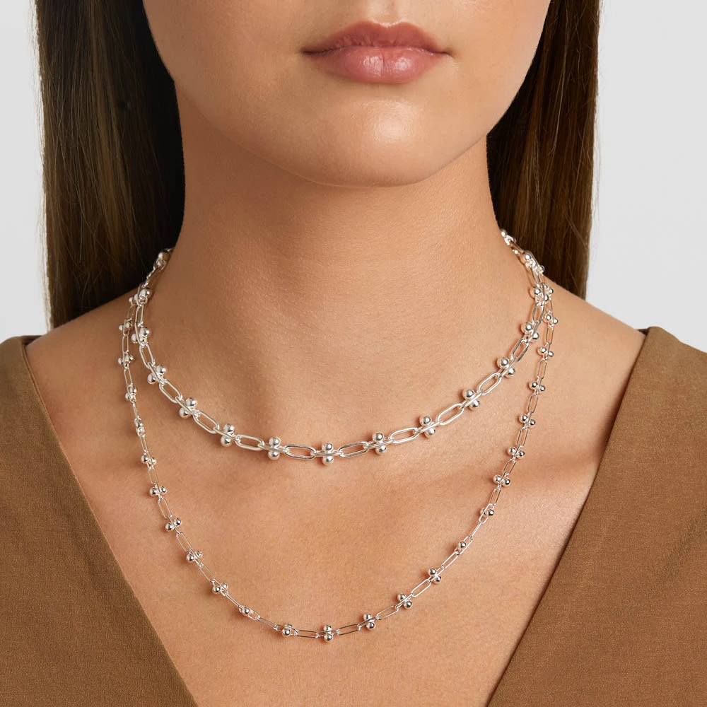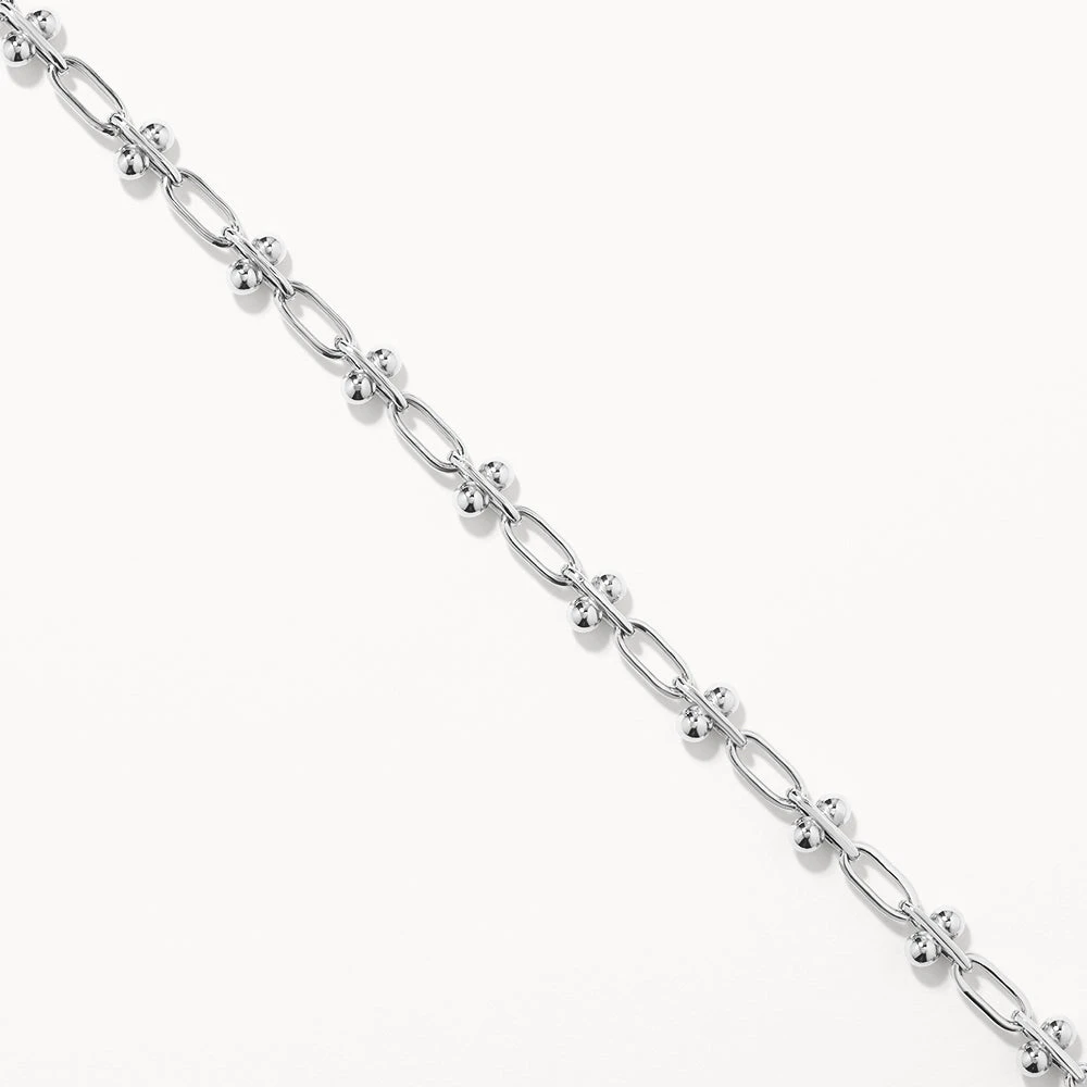 Bring interest and texture to your look with this beaded silver paperclip necklace. With a chunky width, choker-style 40cm length, and featuring berma beads, wear the bauble paperclip chain necklace to elevate everything from a simple tee to a going-out dress. Crafted in 925 sterling silver, it’ll be a favourite in your collection for years to come. air back with the bauble paperclip bracelet for a polished look.