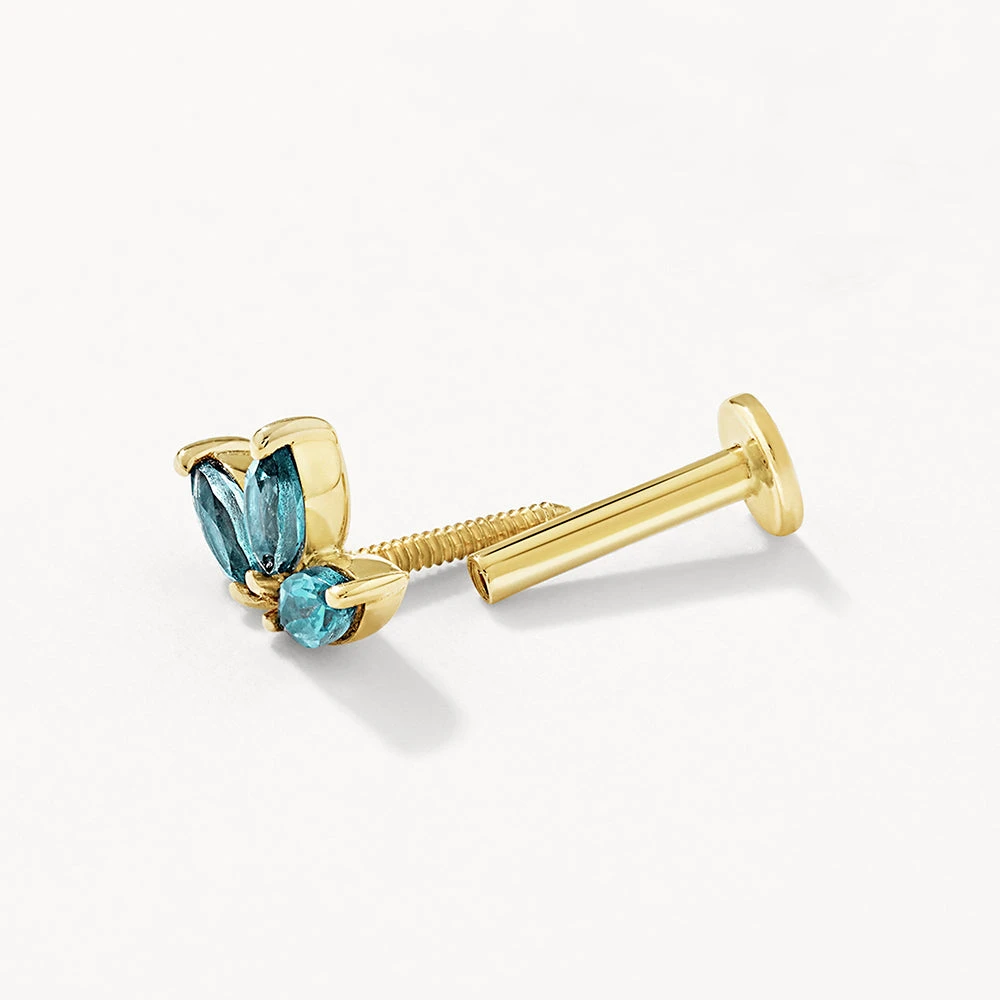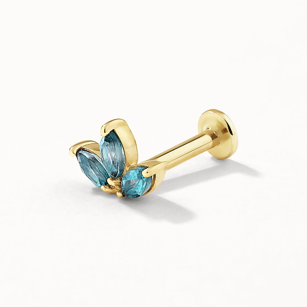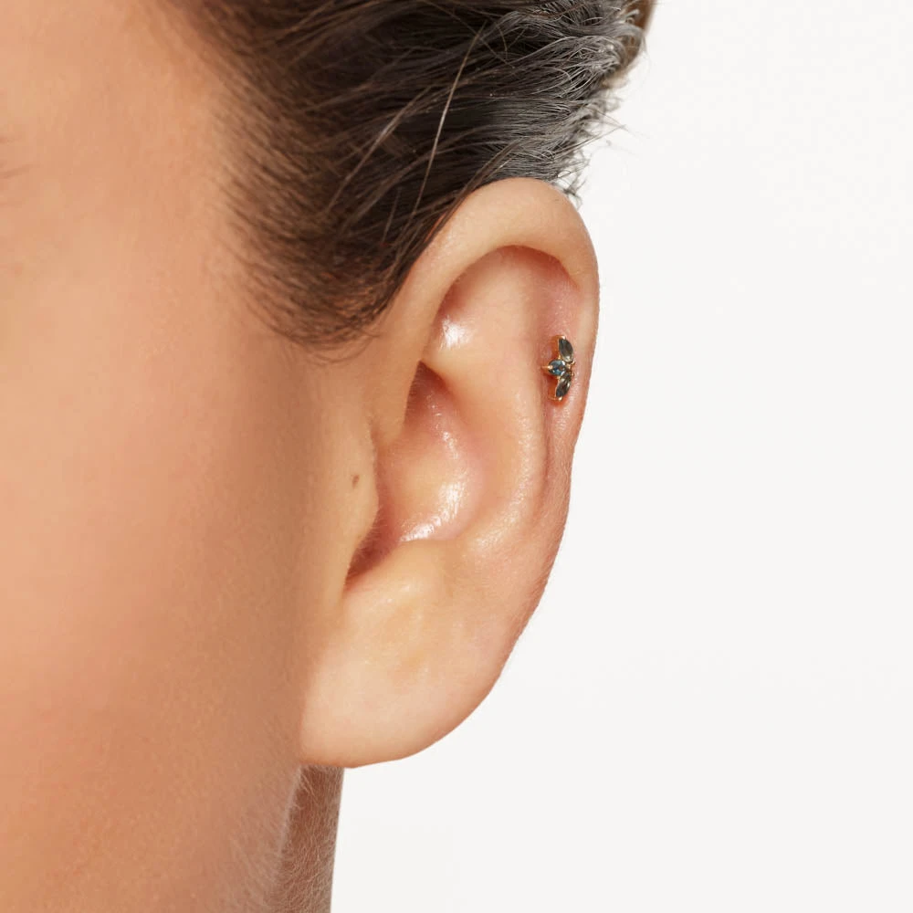 Picture this: the stone shape of the year (marquise), in trending London Blue topaz, brought together in a must-have helix earring. This single helix stud is crafted with a trio of AA grade blue topaz stones to resemble a flower earring. Crafted in 10k gold with a comfortable flat back, this blue topaz helix stud is designed specially to wear in your cartilage piercing. Pair it with yellow gold or diamond studs for a unique touch to your ear party.