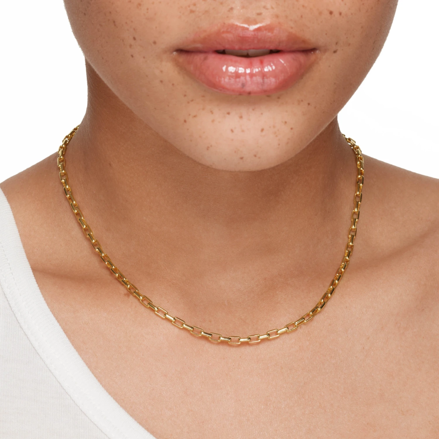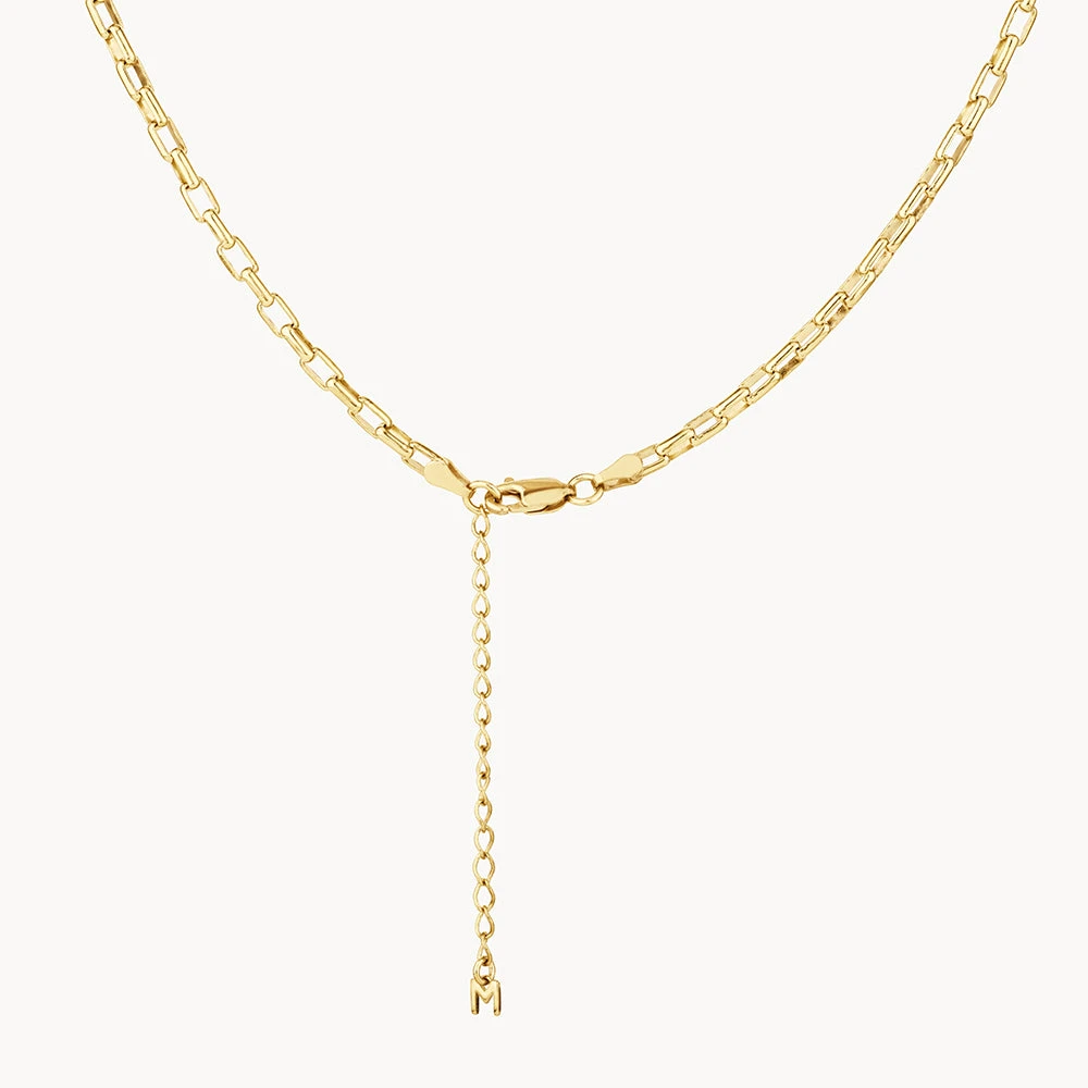 Combining the look of a box chain and a paperclip chain, this classic gold necklace will bring a luxe element to every outfit. Worn alone for an effortless statement, or layered with chains for a personalised take, this 18k gold plated necklace will be on high rotation in your wardrobe. Available in a 40cm and 5cm length.