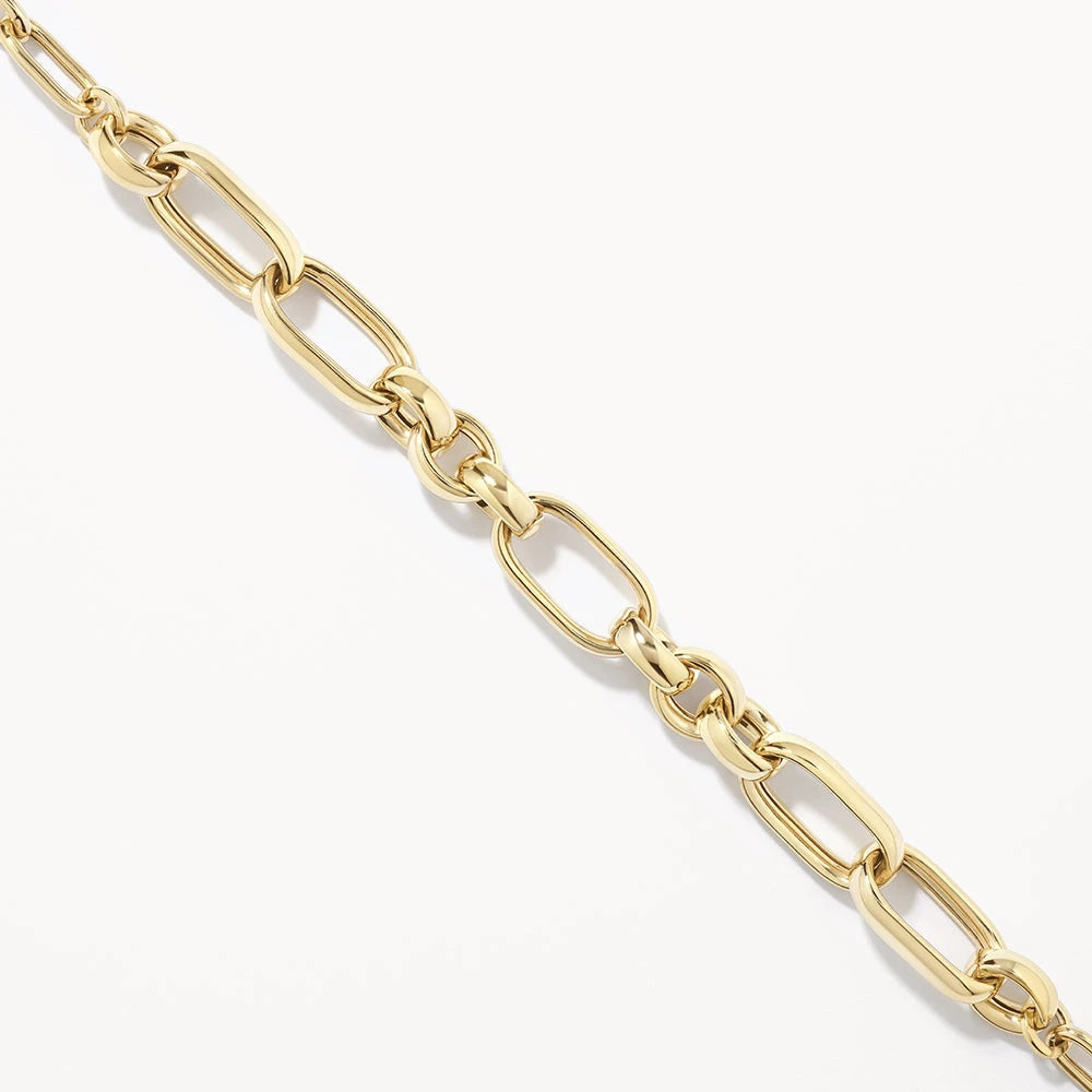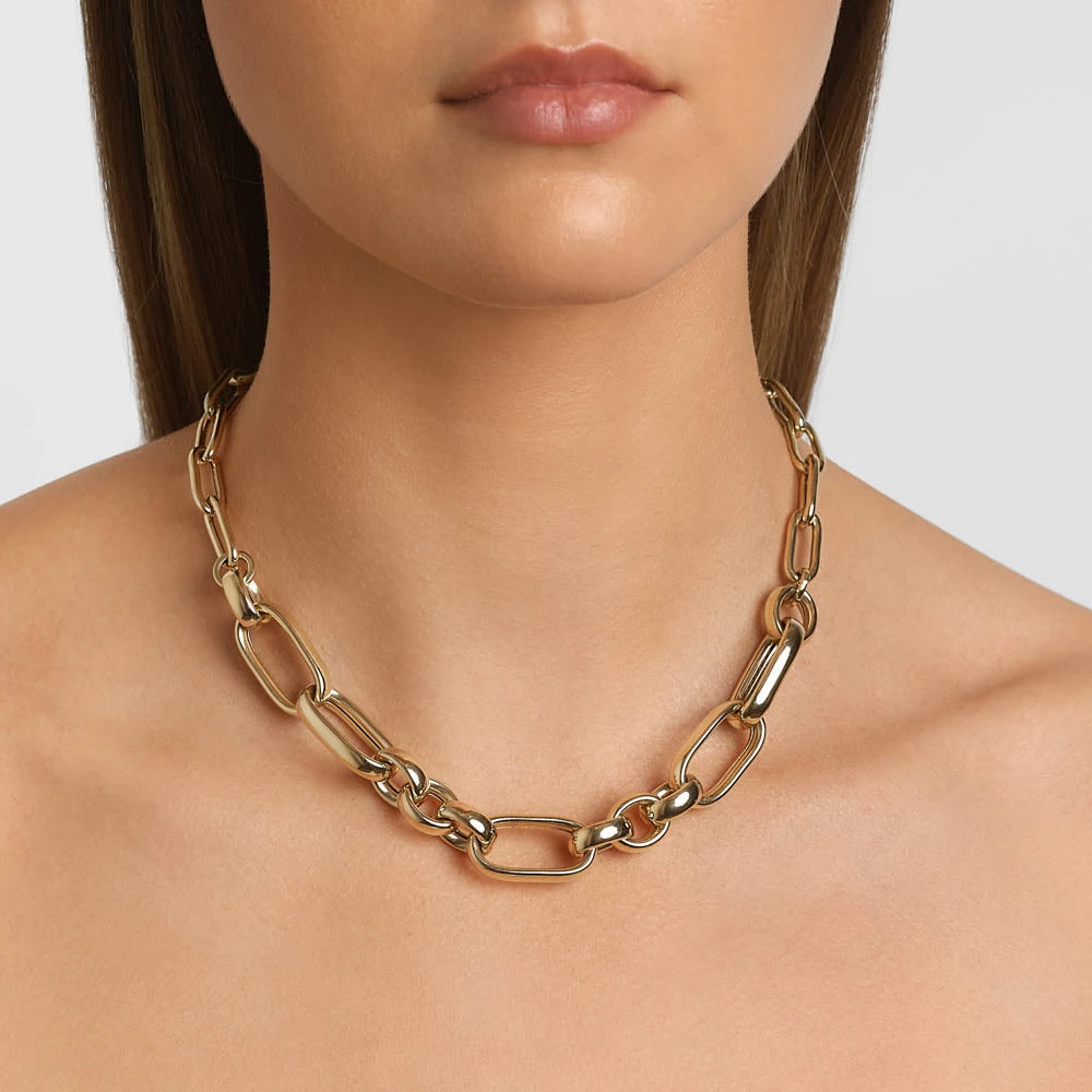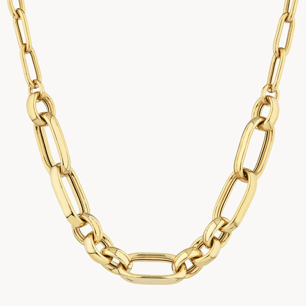 If you love a statement look, our boldest, chunky gold paperclip necklace is your must-have. Combining paperclip and belcher chain links in a bold width, this necklace is the only piece you need for an impactful look. Pair it back with the matching chunky paperclip chain bracelet in gold for a polished yet heavy statement look. Our chunky paperclip chain necklace is crafted in 18k fine yellow gold plating, with a 43cm length.