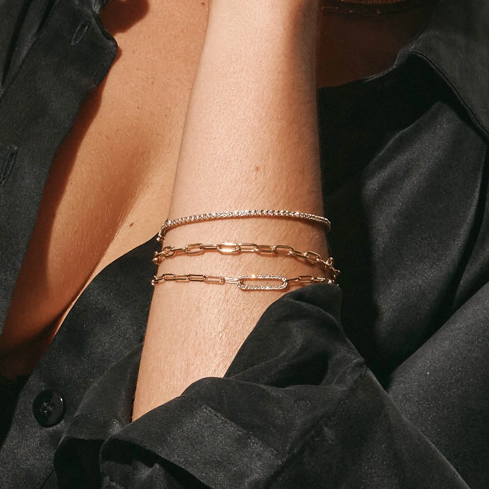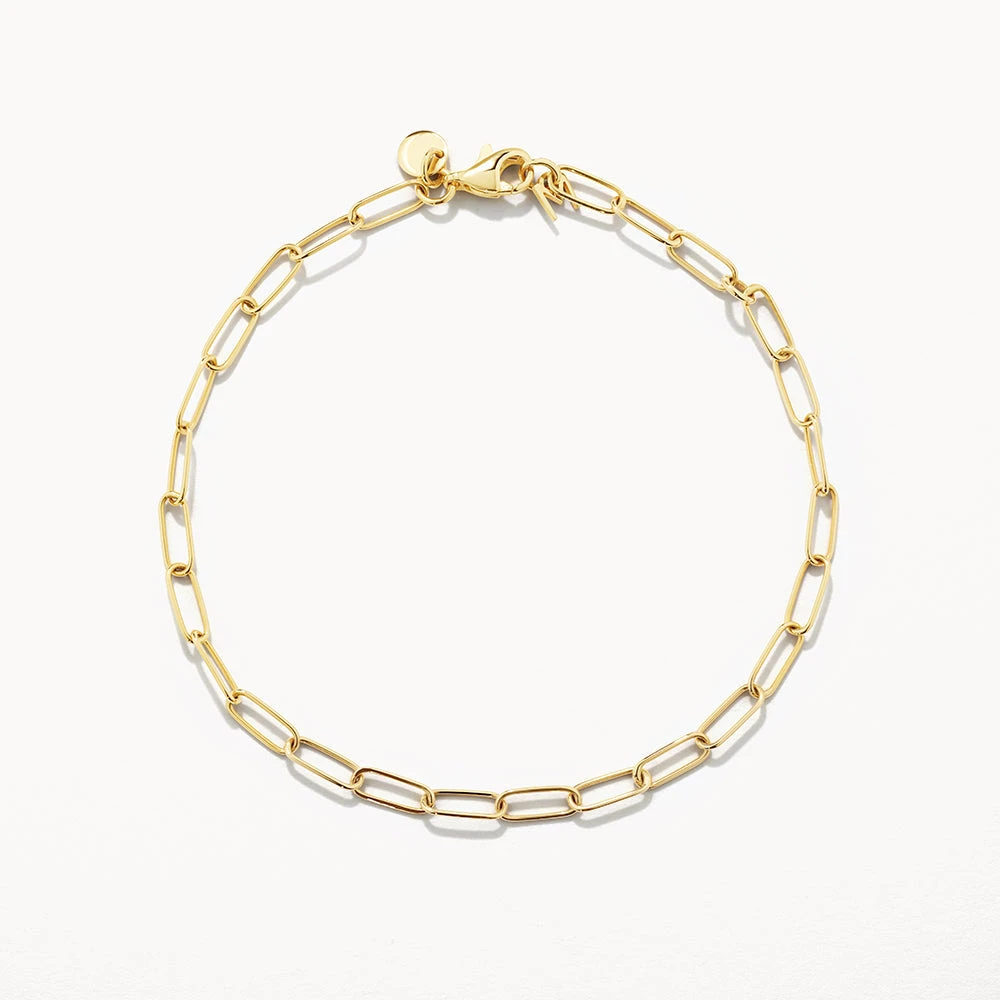 Classic, timeless, essential. Trust us when we say this 20cm gold paperclip bracelet is about to become your most-worn piece. Crafted in 10k gold, this versatile paperclip bracelet can be worn to work, to the bar, and everywhere in between. Keep it simple and wear alone, or layer with extra pieces such as our engravable disc bracelet and a diamond tennis bracelet.