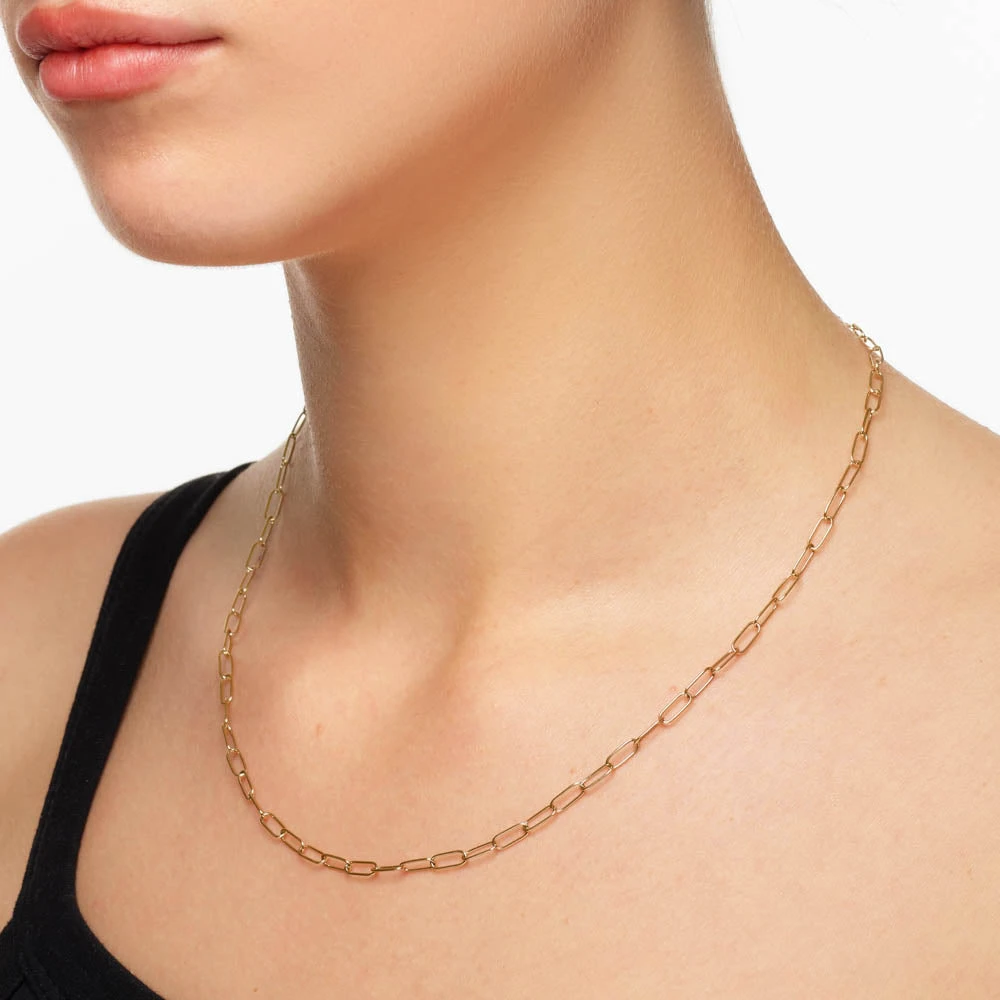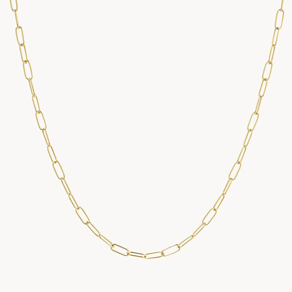 Classic, timeless, essential. Trust us when we say this 50cm gold paperclip necklace is about to become your most-worn piece. Crafted in 10k gold, this versatile paperclip chain can be worn to work, to the bar, and everywhere in between. Keep it simple and wear alone, or layer this piece with different textures such as a rope chain and herringbone chain.