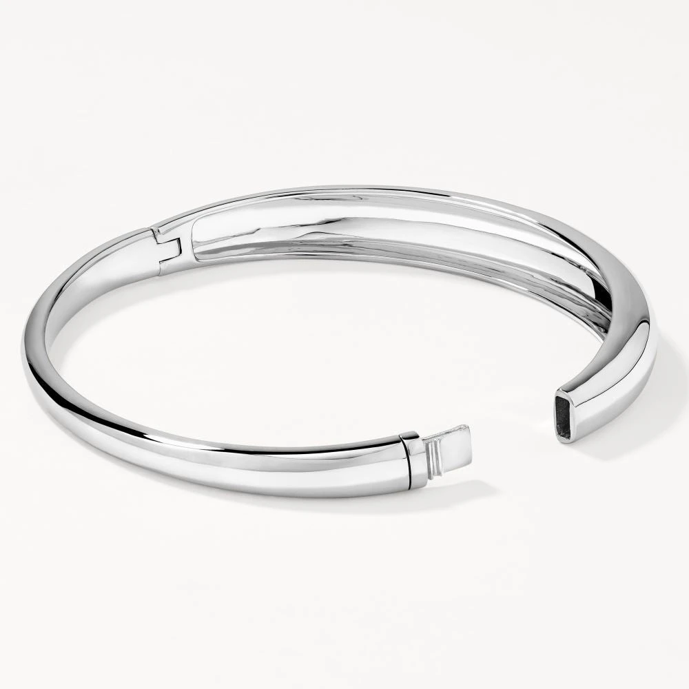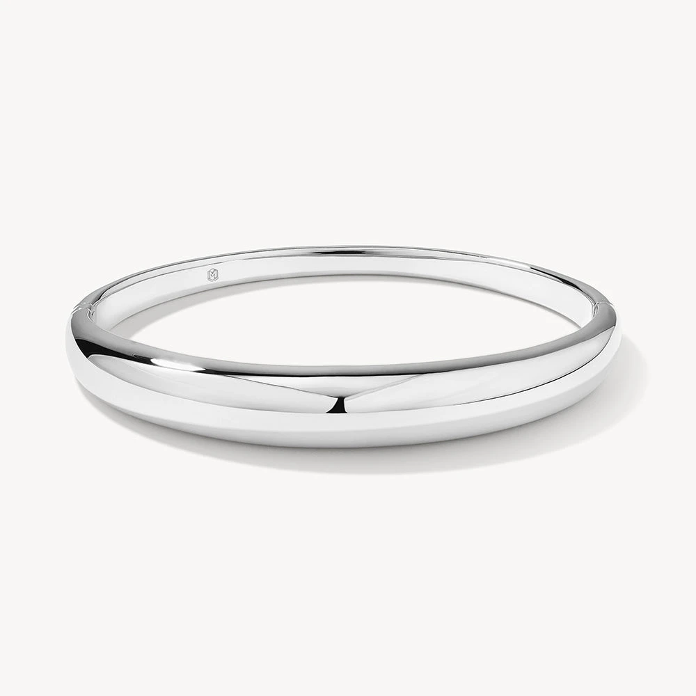 A simple silver bangle to go with every single look – which is statement enough to be a look all on its own. Our silver chunky dome bangle is timeless yet modern, with its bold curvy silhouette. Featuring an open-and-close mechanism for effortless wear, this 925 sterling silver hinged bangle will be on heavy rotation in your jewellery wardrobe.