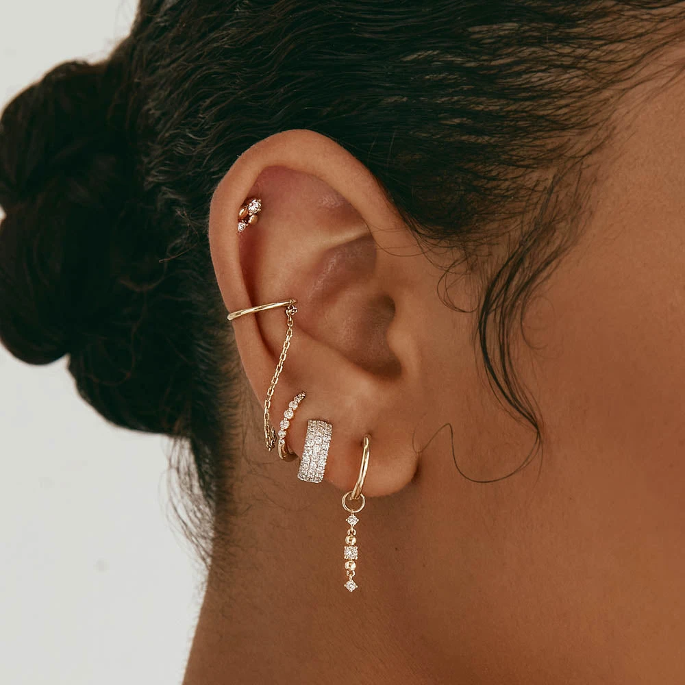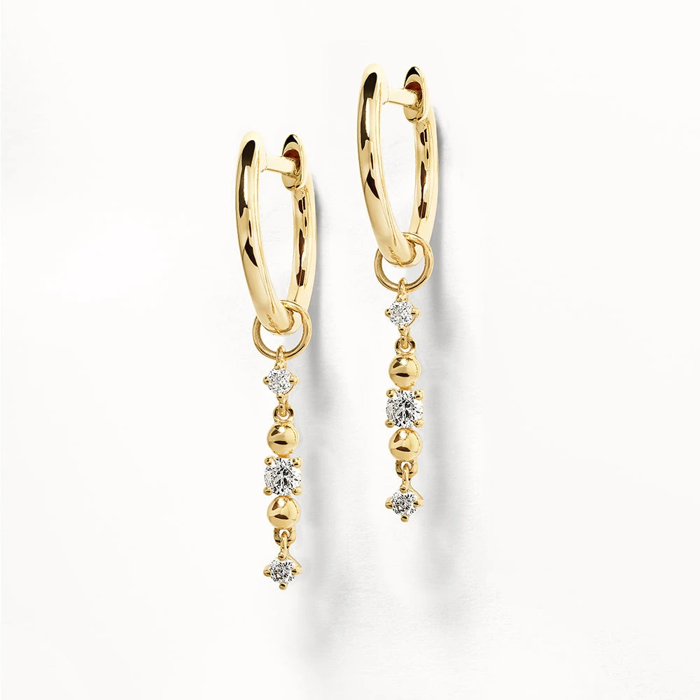 Can’t decide between a huggie and a drop? Add the best of both worlds to your collection with these diamond gold charm earrings. Featuring a 10k gold huggie and a delicate drop bar with a total of 6 round brilliant cut, natural diamonds, they’ll bring a touch of luxe to every look. Wear them alone, or add them to a gold and diamond ear stack.
