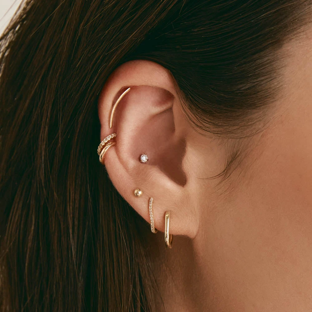 Our fine diamond wave earrings are the subtly unique, elevated gold hoop earrings of your dreams. With a dainty wave design incorporating 26 natural diamonds with a 0.036 carat total weight, these diamond earrings are a precious pair with everyday wearability. Crafted in 10kt yellow gold, wear them alone or pair with your favourite gold and diamond jewellery essentials.