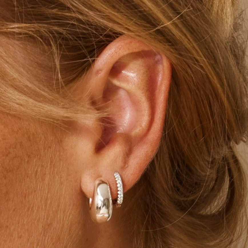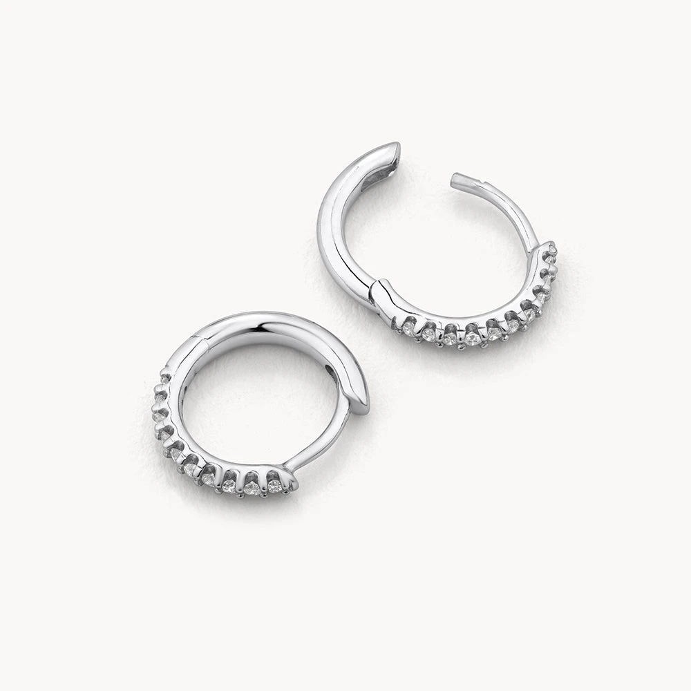 Think of these diamond huggies as the equivalent to your fave heeled ankle boots. Perfect for every day, but with a hint of glamour. Featuring 20, 0.14ct of diamonds paired back with high quality sterling silver. Wear these hoops for every occasion and with every outfit, for effortless elevation. Also available in gold.
