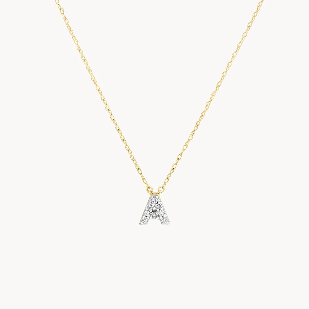 Wear your signature and make it sparkle with our Medley Alpha Necklaces. Nothing writes it better than spelling it out in real diamonds. Created in 10k Yellow Gold and Diamonds, these micro letters hang directly from a fine solid gold chain.
