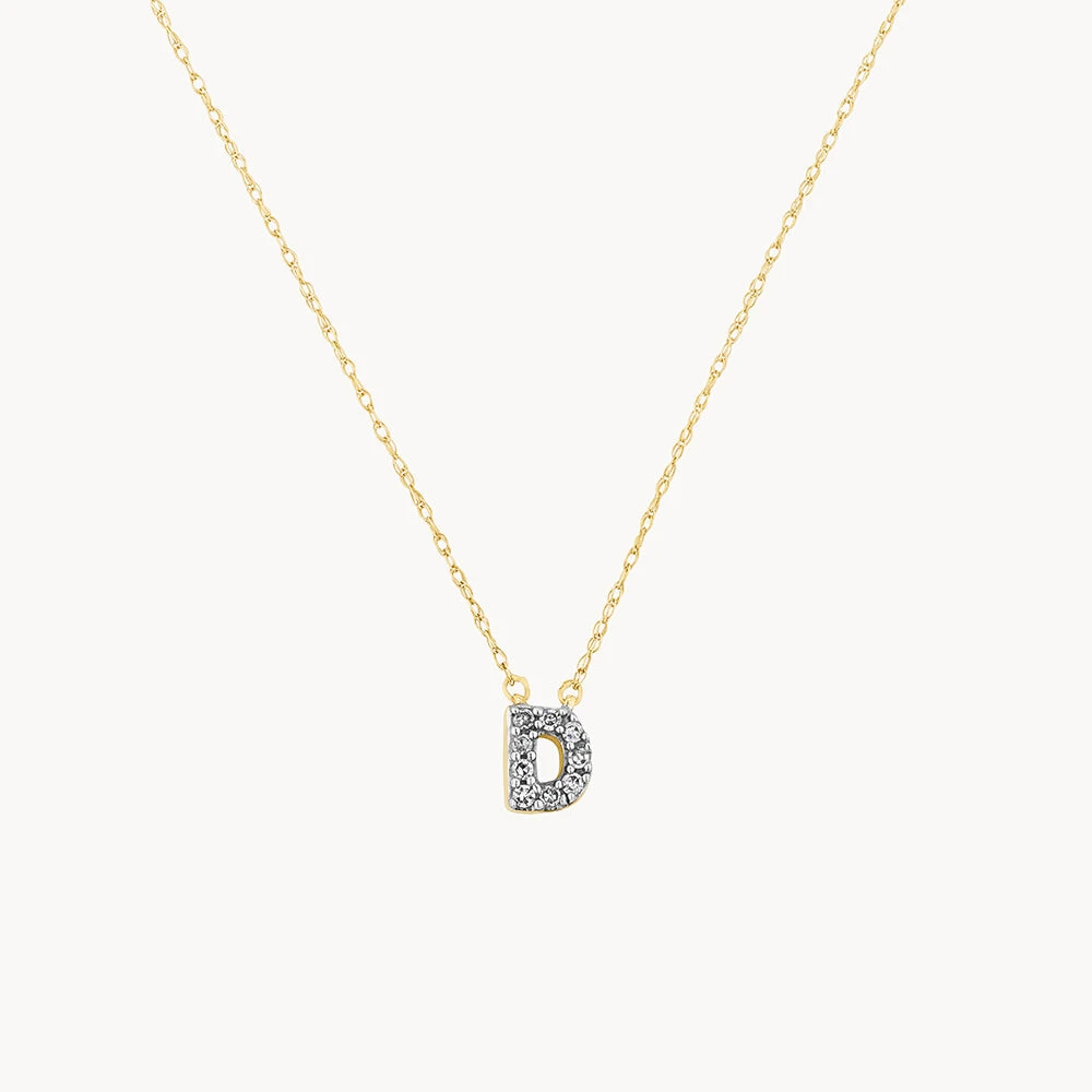 Wear your signature and make it sparkle with our Medley Alpha Necklaces. Nothing writes it better than spelling it out in real diamonds. Created in 10k Yellow Gold and Diamonds, these micro letters hang directly from a fine solid gold chain.