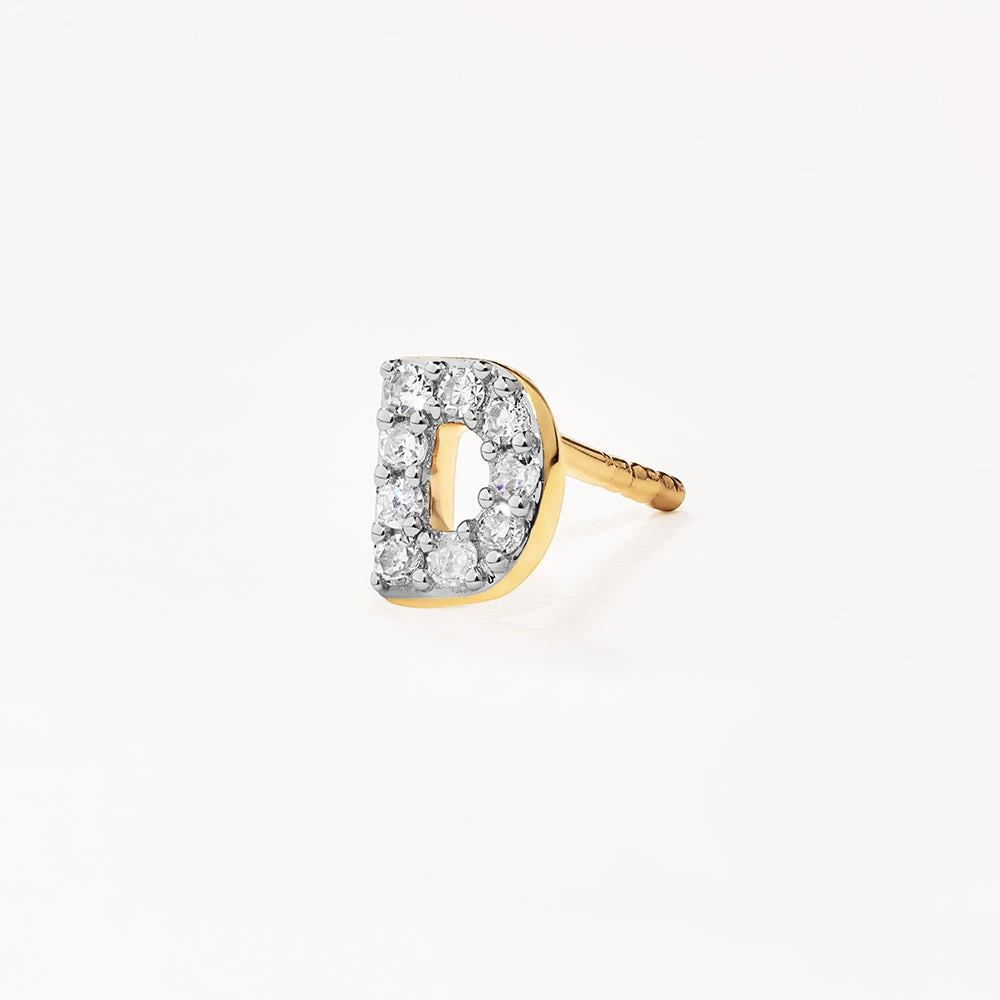Personalisation and customisation at its finest. Featuring the finest diamonds paired back with 10k gold, wear your initials, those of a loved one, or a mix of letters that have meaning to you. Sold as a single stud, you can wear one at a time or stack up as many as you like.