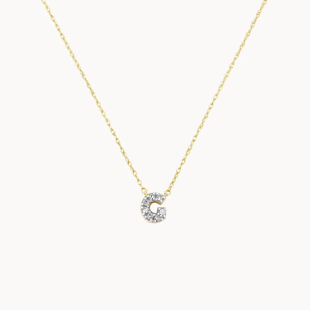 Wear your signature and make it sparkle with our Medley Alpha Necklaces. Nothing writes it better than spelling it out in real diamonds. Created in 10k Yellow Gold and Diamonds, these micro letters hang directly from a fine solid gold chain.