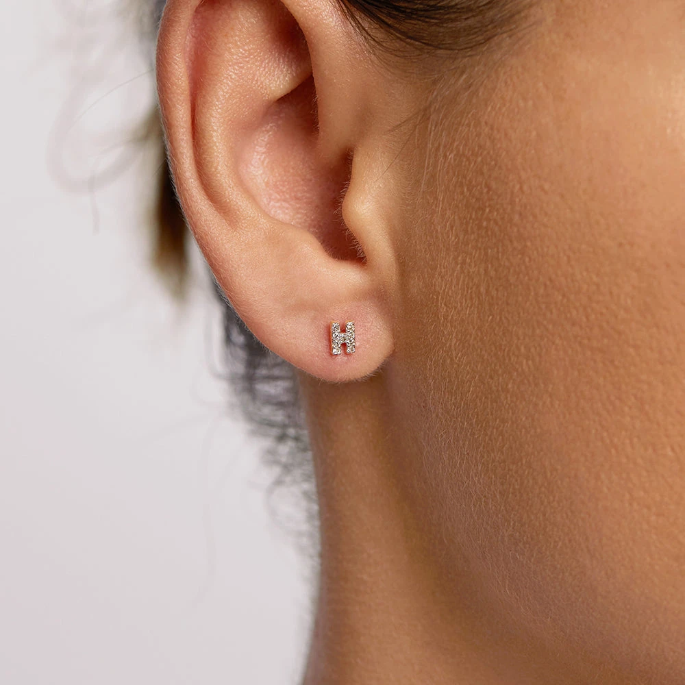 Personalisation and customisation at its finest. Featuring the finest diamonds paired back with 10k gold, wear your initials, those of a loved one, or a mix of letters that have meaning to you. Sold as a single stud, you can wear one at a time or stack up as many as you like.