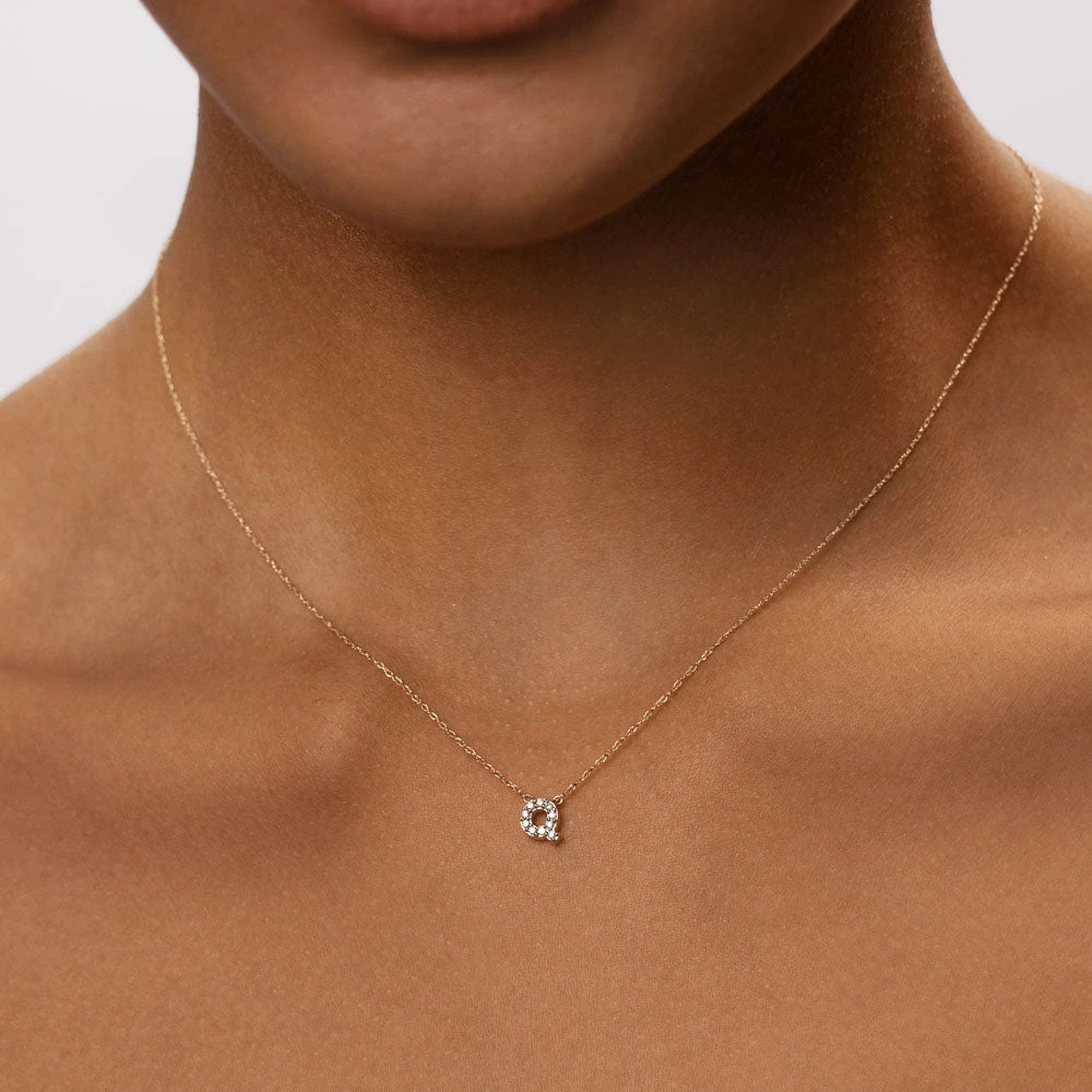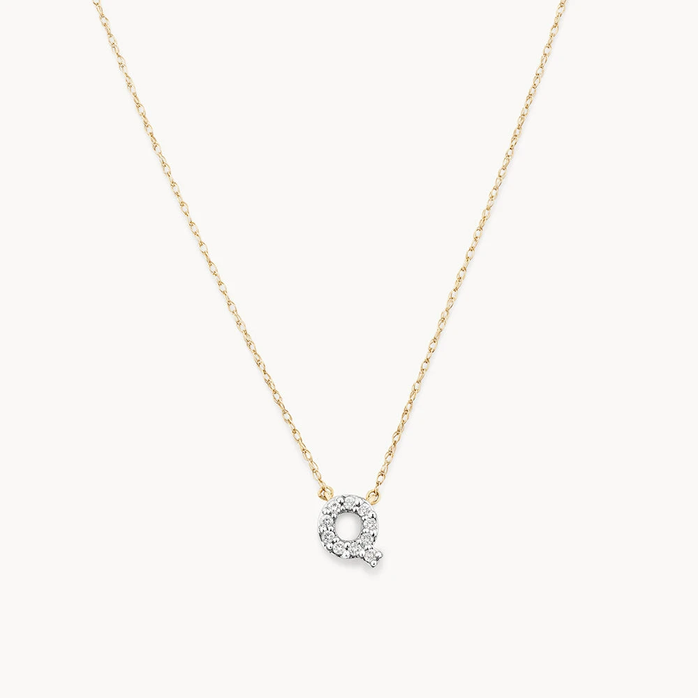 Wear your signature and make it sparkle with our Medley Alpha Necklaces. Nothing writes it better than spelling it out in real diamonds. Created in 10k Yellow Gold and Diamonds, these micro letters hang directly from a fine solid gold chain.