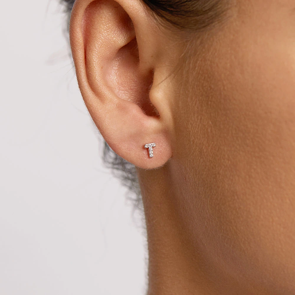 Personalisation and customisation at its finest. Featuring the finest diamonds paired back with 10k gold, wear your initials, those of a loved one, or a mix of letters that have meaning to you. Sold as a single stud, you can wear one at a time or stack up as many as you like.
