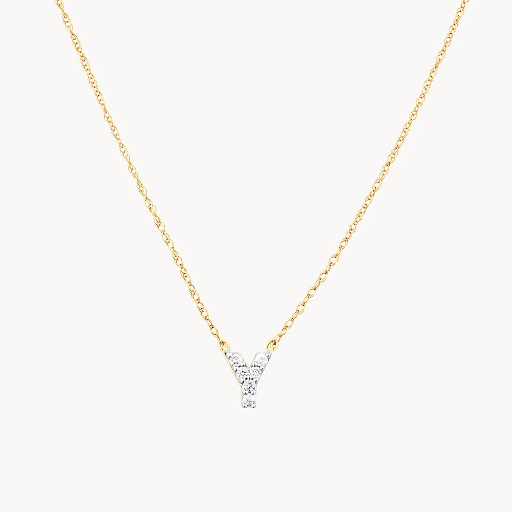 Wear your signature and make it sparkle with our Medley Alpha Necklaces. Nothing writes it better than spelling it out in real diamonds. Created in 10k Yellow Gold and Diamonds, these micro letters hang directly from a fine solid gold chain.