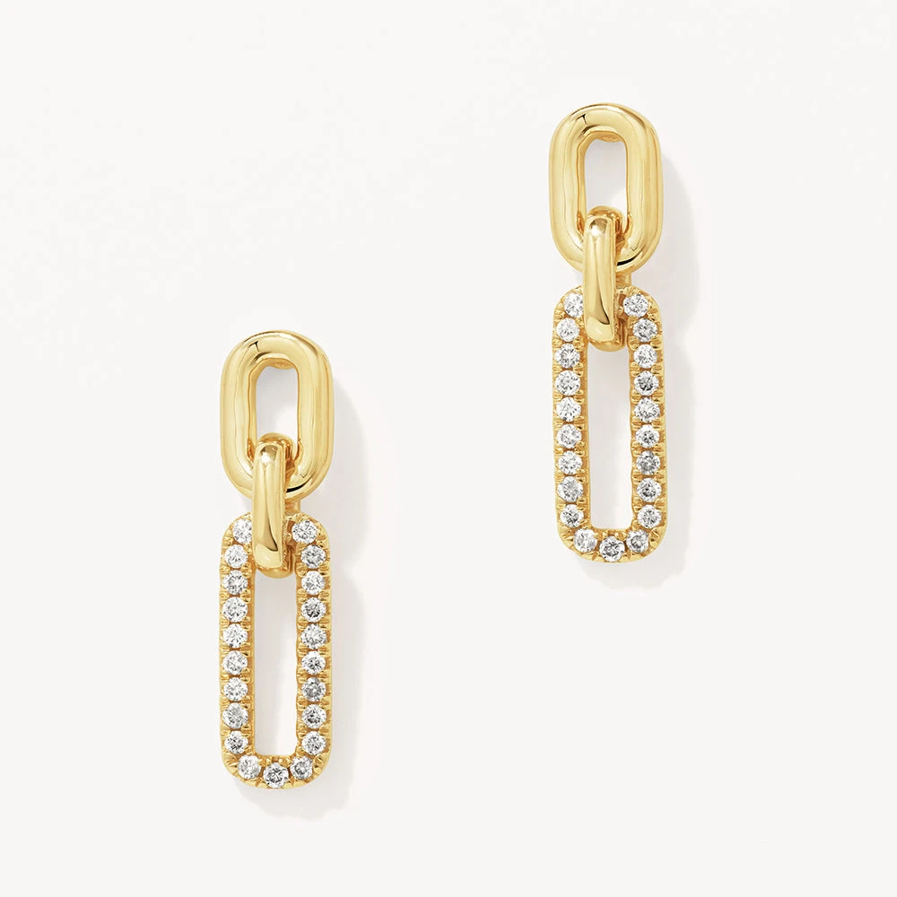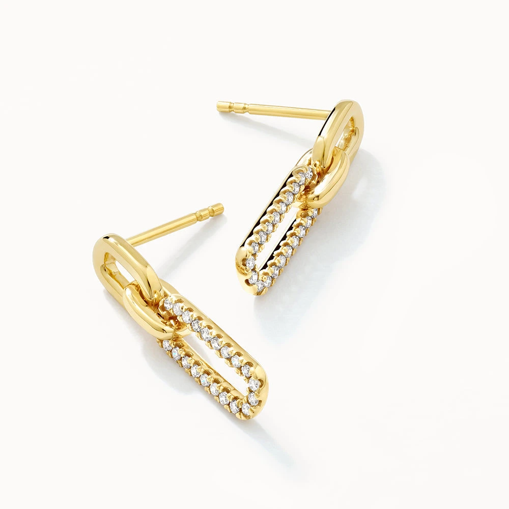 Modern yet timeless, these paperclip diamond earrings are the ultimate piece for the times you want to go a little more glam. Crafted in 10k gold and set with 42 natural diamonds, these diamond drop earrings feature a stud backing. Wear them alone for effortless luxe, or stack them up with diamond studs.