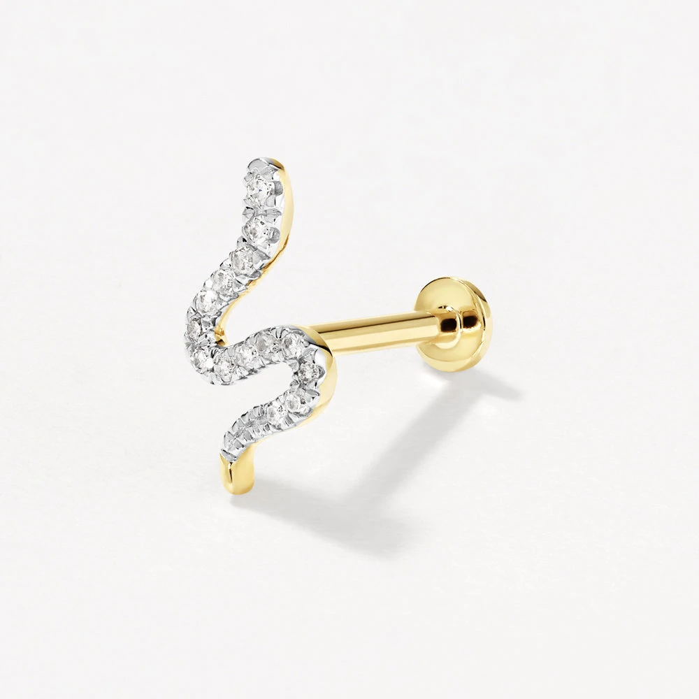 Make a meaningful statement with this diamond cartilage earring. Featuring a diamond snake motif, this single flatback earring is specially designed for your helix piercing. Symbolising transformation and growth, style this screw back snake stud with other motif designs for a personalised ear party stack. Available with an 6.5mm or 8mm post.