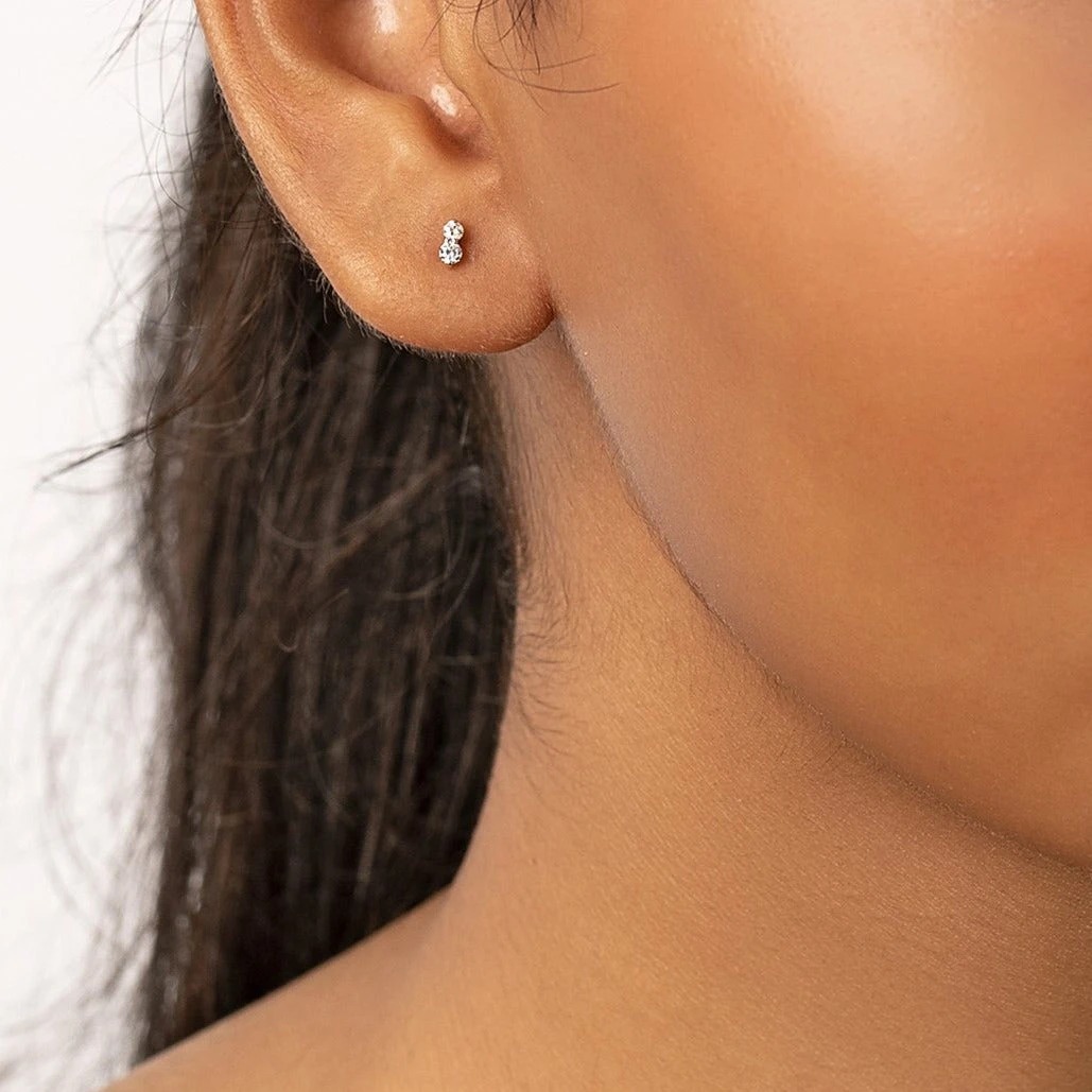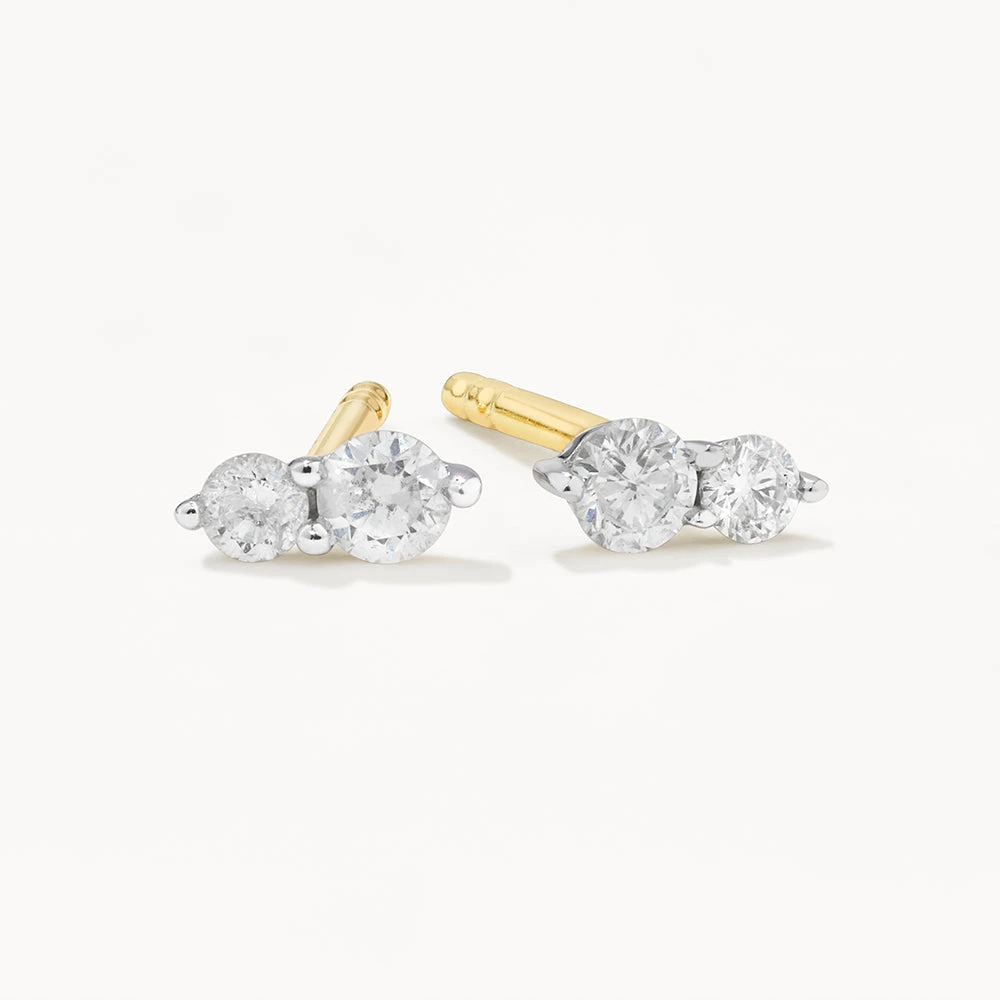 Everyone needs a pair of diamond studs! The diamond twin cluster studs in 10k Gold feature two natural diamonds on each stud, minimalist yet elegant. Adding a pop of sparkle to your outfit, we love how these diamond earrings feature two different shaped diamonds clustered adding a unique touch. These 10k Gold diamond studs will take your curated ear look to the next level. Complete your ear stack and pair these with other minimalist diamond studs, like the diamond letter earrings or 10k gold hoops.