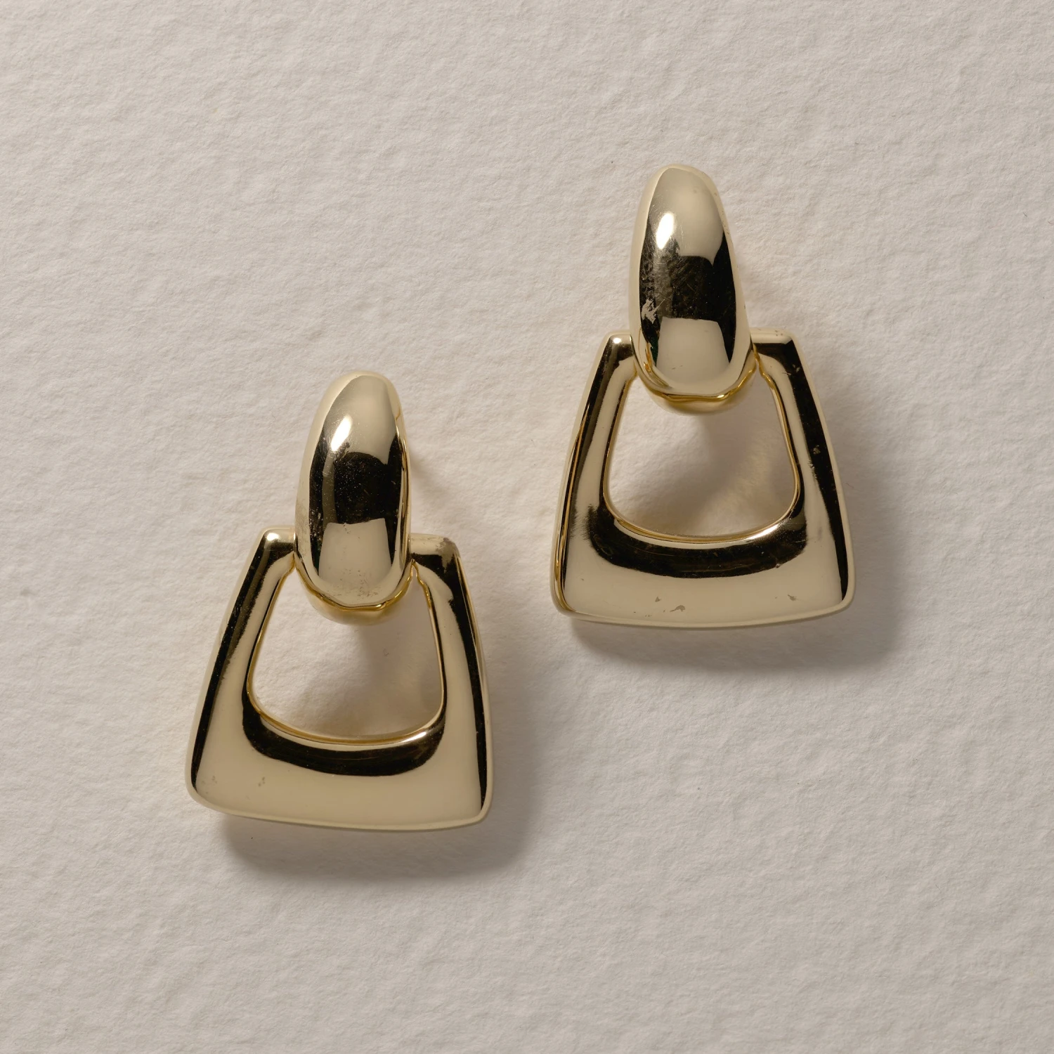 Make a statement with these stunning Doorknocker Hoop Stud Earrings in gold, crafted from 18k gold plating for a luxurious finish. Featuring a bold, doorknocker-inspired design, these hoop earrings are perfect for adding a touch of elegance and sophistication to any outfit. Whether you’re looking to enhance your evening wear or elevate your daily style, these gold hoop earrings offer the perfect mix of classic glamour and modern edge. Lightweight and comfortable for all-day wear, they’re a must-have for any fashion-forward jewellery collection.