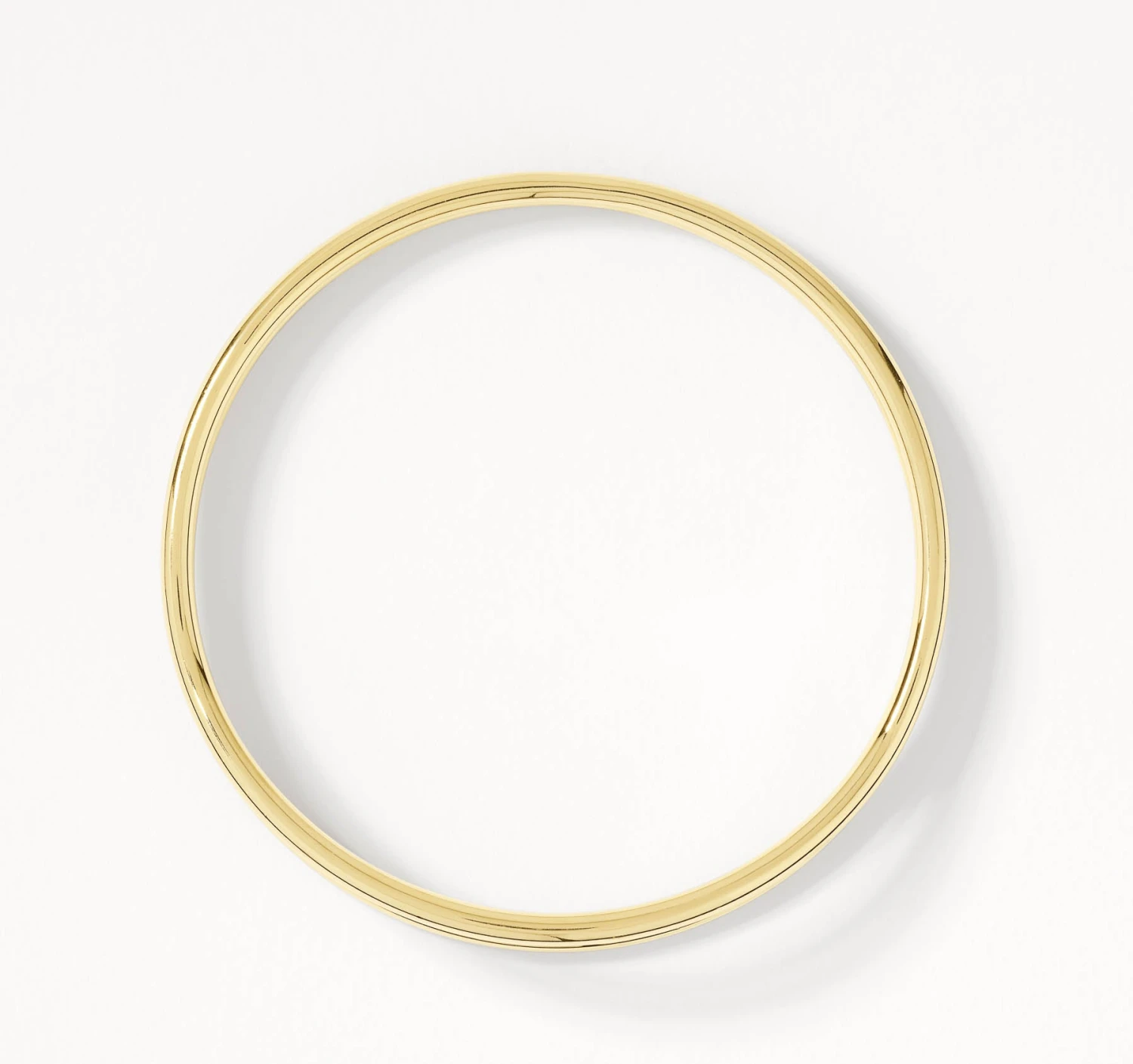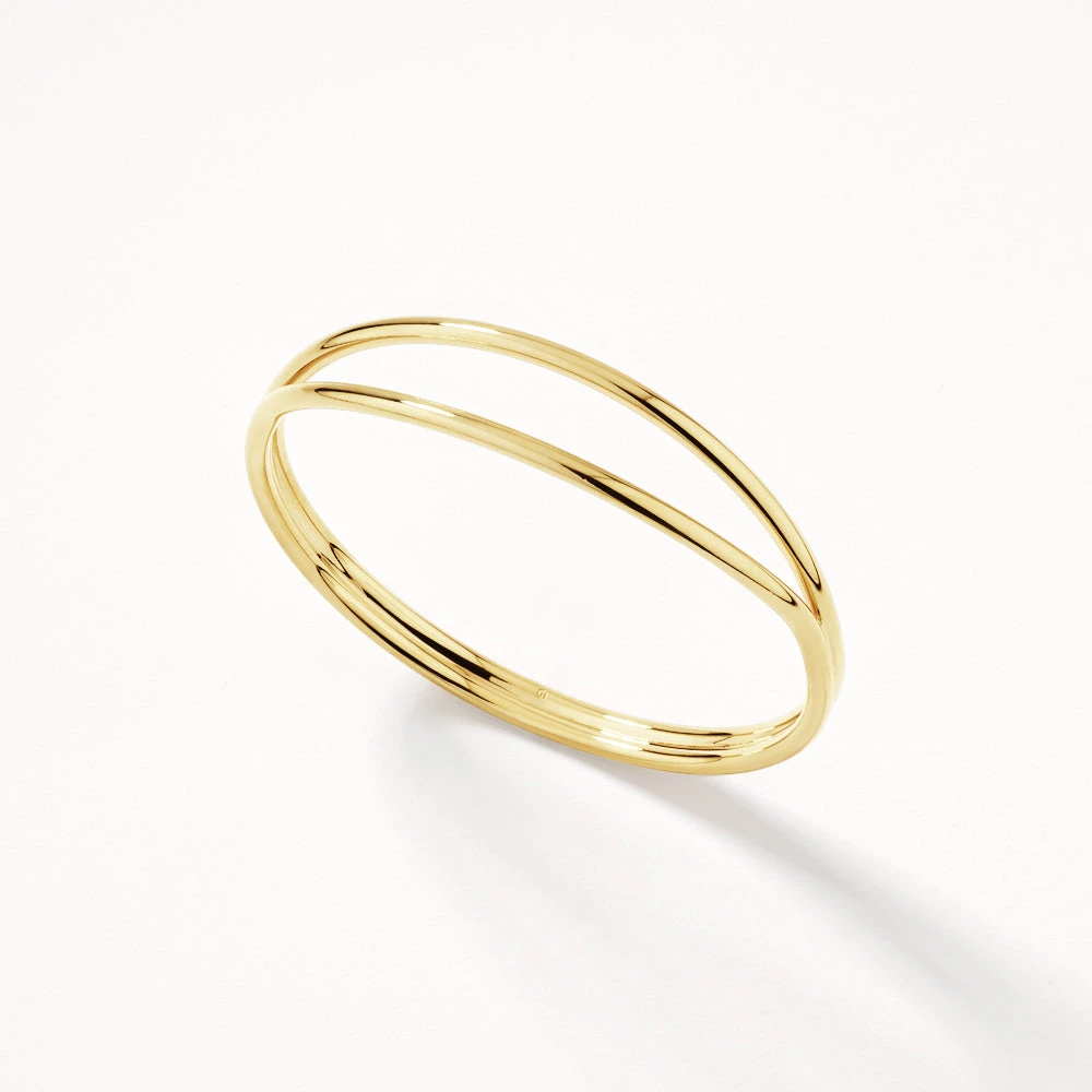 A classic gold plated bangle with a unique statement edge, this double band bangle is your new must-have. Crafted in 18k fine gold plating, it features a modern split band design. Pair it back with the double split band ring in gold for a co-ord look.