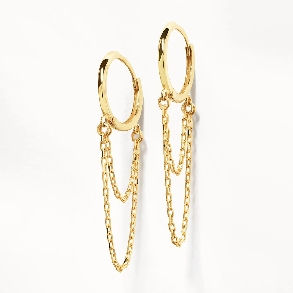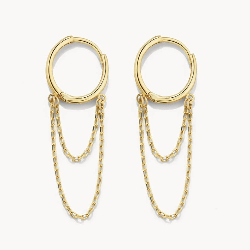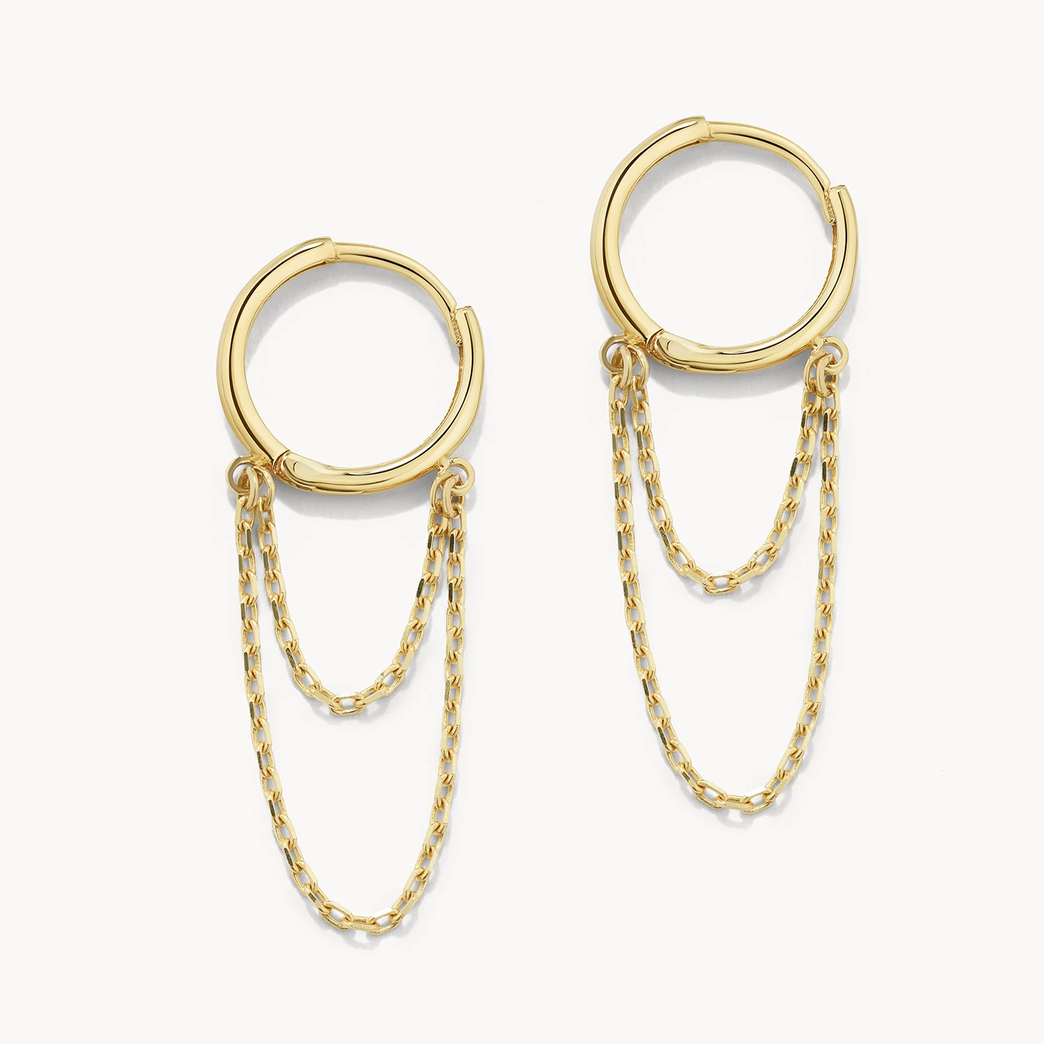 Chain earrings are the ultimate, modern style for levelling up your ear stack. Combining an effortless-to-wear gold huggie earring with the uniqueness of a gold threader earring, our double chain huggies are the perfect piece to begin your statement stack with. Crafted in 10k solid gold, you can style these beauties on repeat.