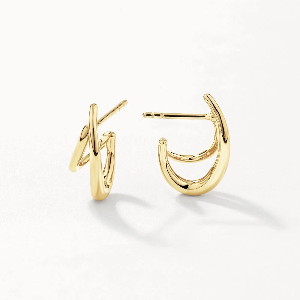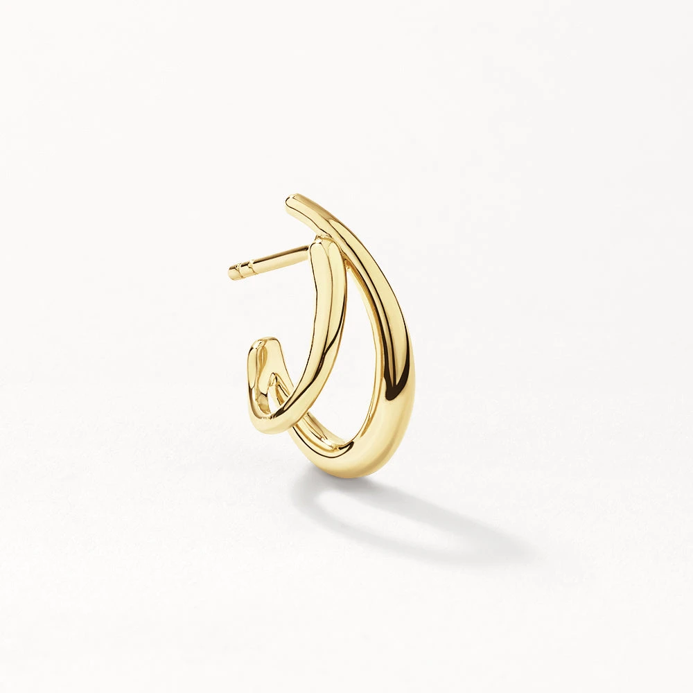 Achieve a multi-piercing look with zero effort, with these unique double huggies. Crafted in 18k fine gold plating, these split band earrings are modern yet timeless and versatile. Stack them alongside your favourite gold plated earrings to build a statement look.