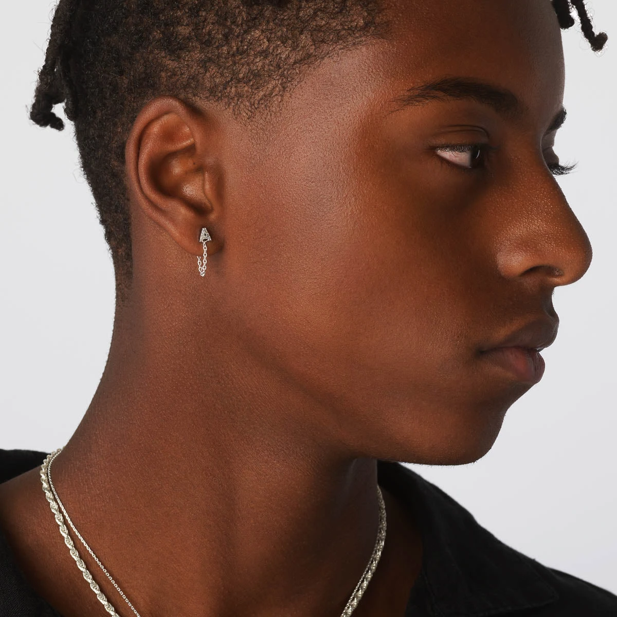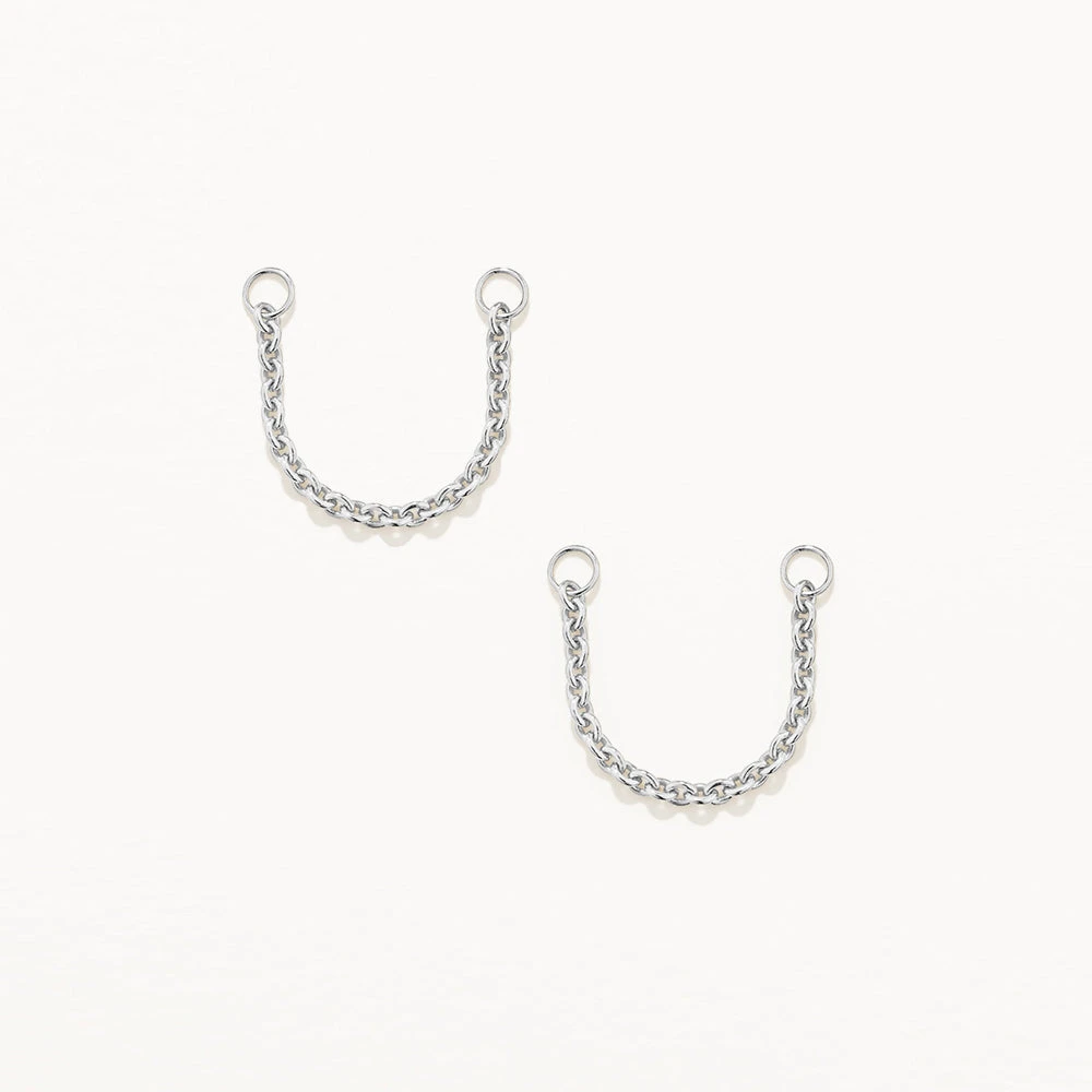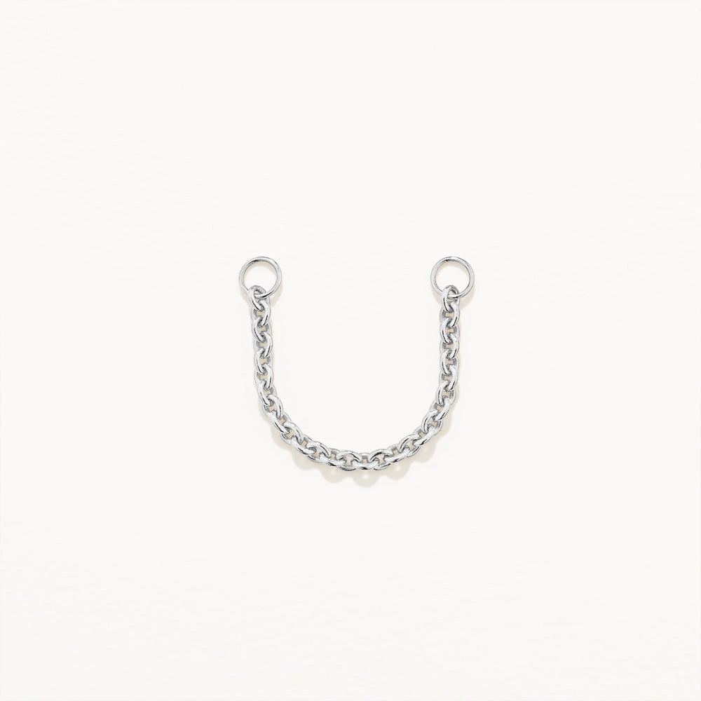 The must-have chain earring your ear stack is missing, our connector earring cable chain will add length, movement, and texture to your look. Crafted in 925 sterling silver with a 30mm length, wear this single earring connector chain between two studs if you have multiple piercings; or simply connect to the front and back of a single stud for a fine statement. Also available in 10k gold.