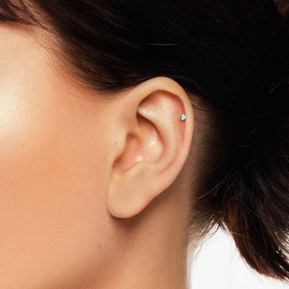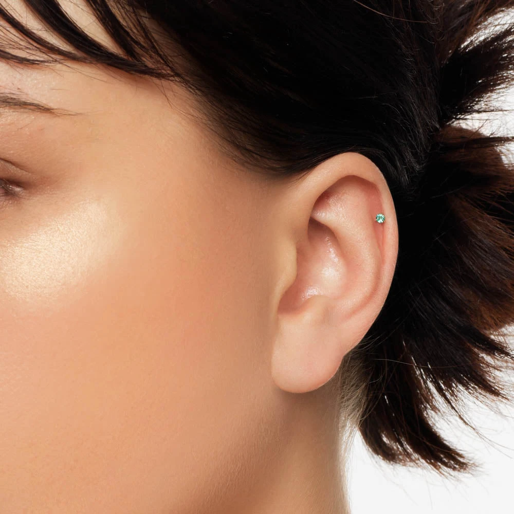 The full stop for your ear stack. As in, the perfect finishing touch – whether you’re going for: Fierce. Chic. Unique. Etc. This single, flat-back stud earring featuring an AA grade natural emerald is created just for your cartilage piercing. The emerald helix single stud earring is available in two post lengths, 6.5mm and 8mm, so you can choose the perfect fit for your piercing. Crafted in 10k gold.