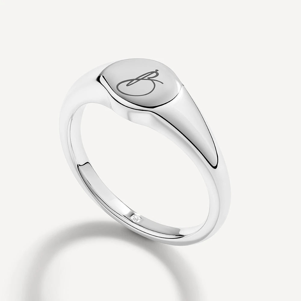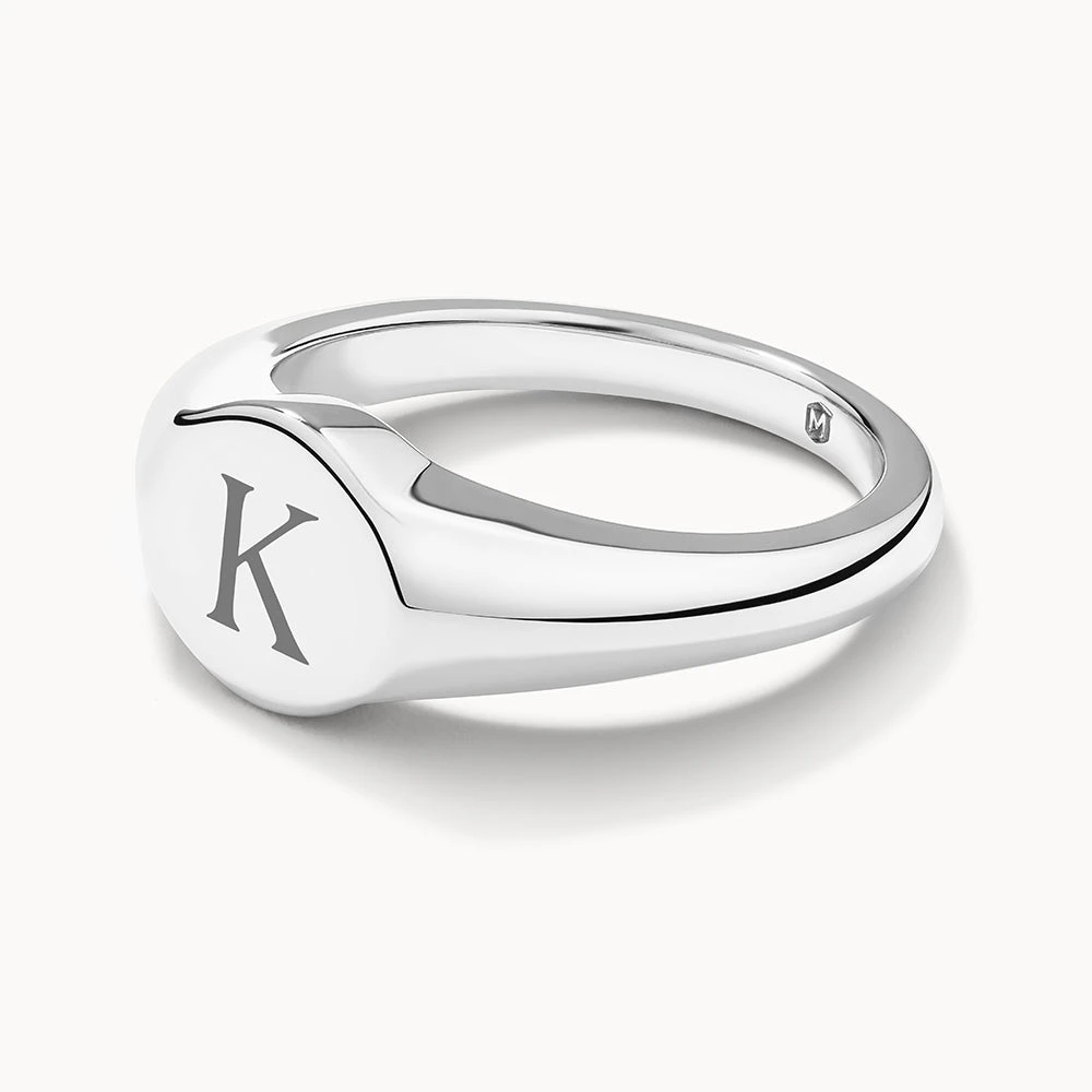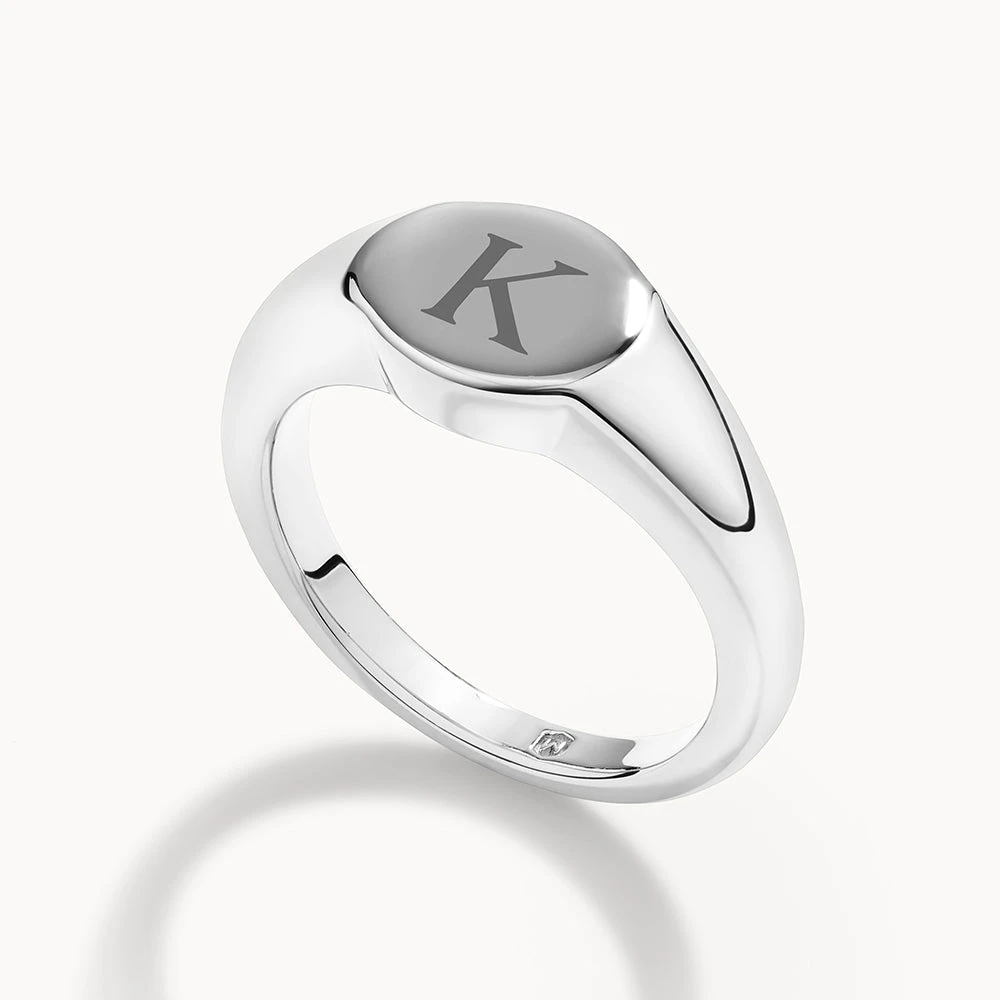 A signet ring is a jewellery wardrobe must-have, and this silver statement engravable ring is the perfect way to embrace the look like you mean it. Personalise this bold circle ring with our complimentary engraving service, then wear it on whichever digit you prefer – including as a pinky ring. Crafted in 925 sterling silver. Available in five sizes.