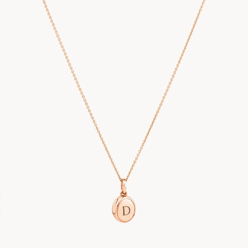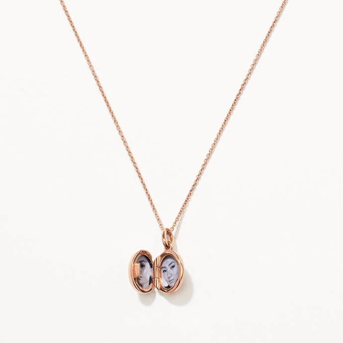 The perfect personalised jewellery gift for your wife, mum or friend, this rose gold locket necklace can hold two pictures inside. The mini oval locket necklace in rose gold is a timeless necklace for every occasion. This rose gold locket can be worn by itself or layered with multiple chains. This dreamy oval engravable locket is crafted 18k fine rose gold plating, with a sterling silver base. Also available in gold and silver.