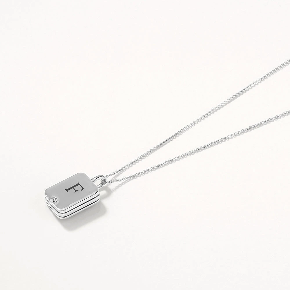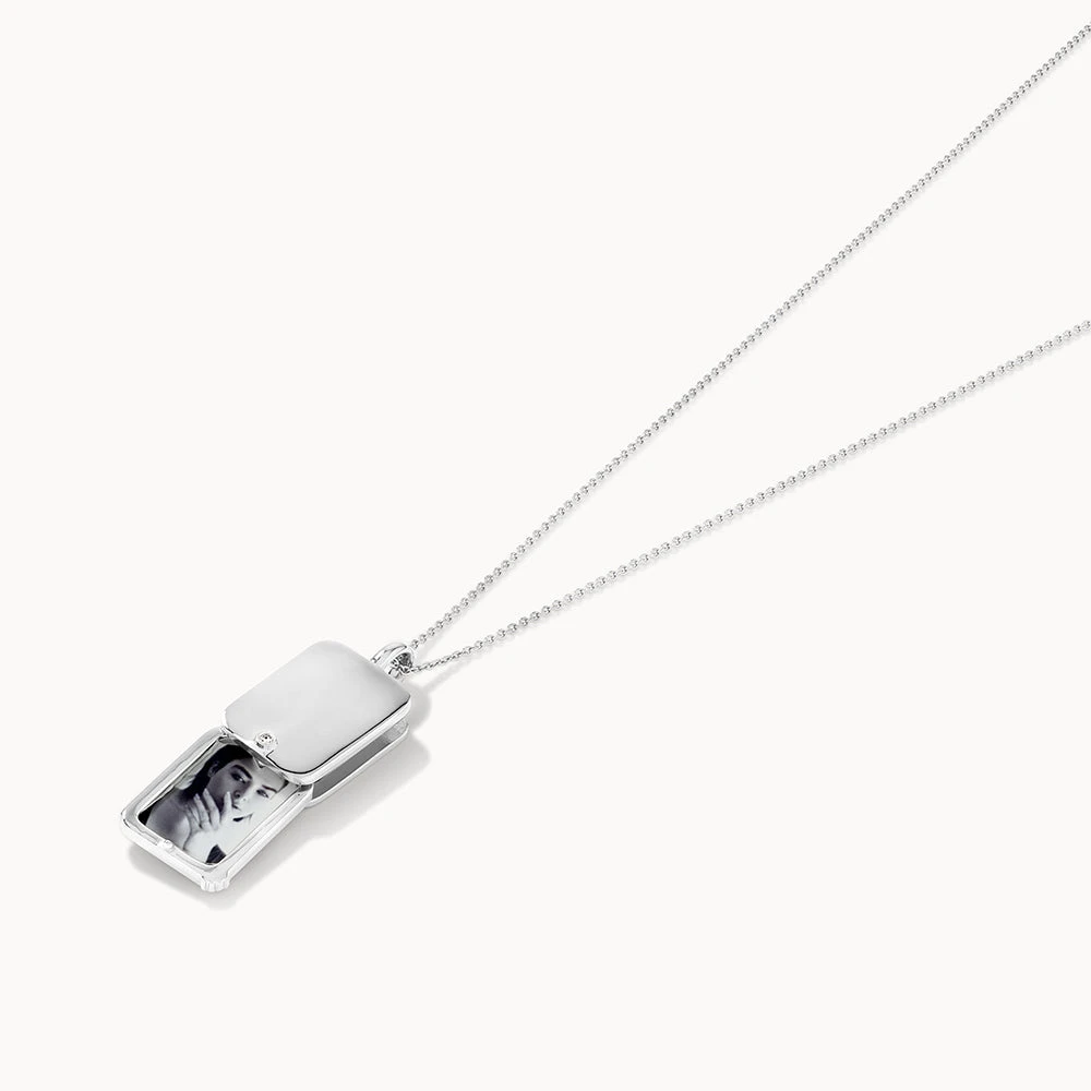 Give your jewellery collection a personalised twist with our engravable rectangle flip locket. As fun as it is meaningful, personalise this photo locket necklace with our complimentary photo printing service as well as complimentary engraving. Crafted in 925 sterling silver and finished with a natural diamond, this rectangle pendant locket is the perfect piece to personalise for yourself, or to give as a gift.