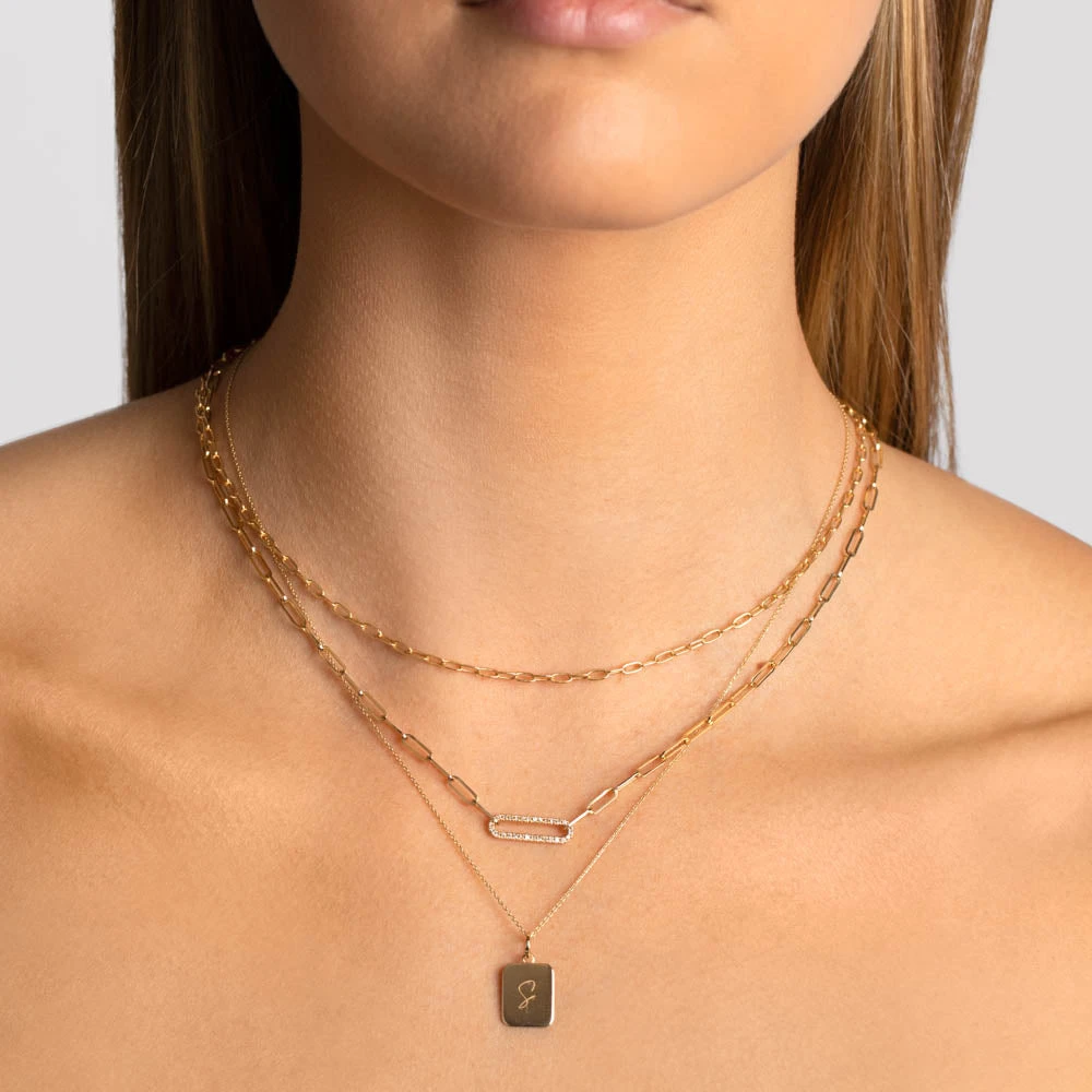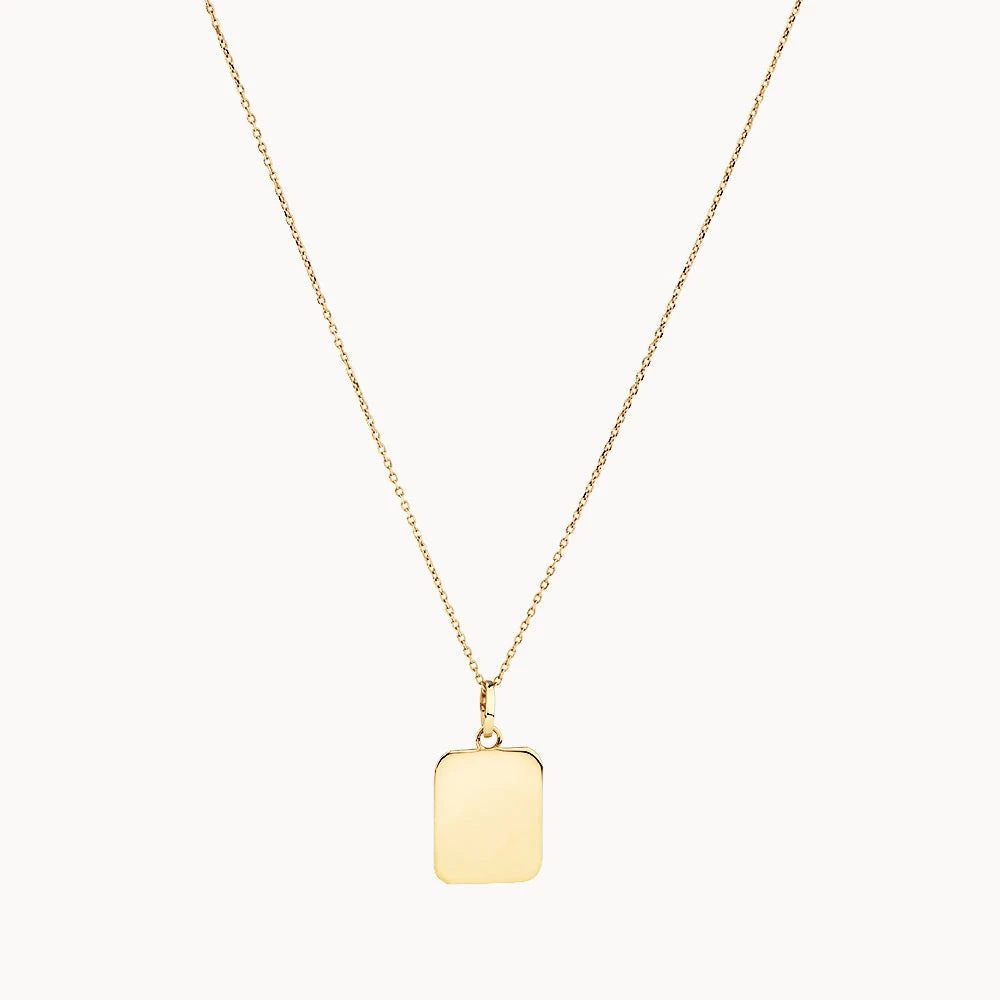 The personalised, minimalist necklace you’ll treasure and wear on repeat. Our new engravable pendant necklace features a fine design and rectangular shape, and you can add your signature with complimentary engraving. Crafted in 10k gold, you can wear this gold necklace with a pendant as often as you like (which will be a lot). For a modern, stacked look, layer it with our engravable disc necklace in gold.
