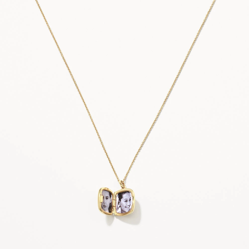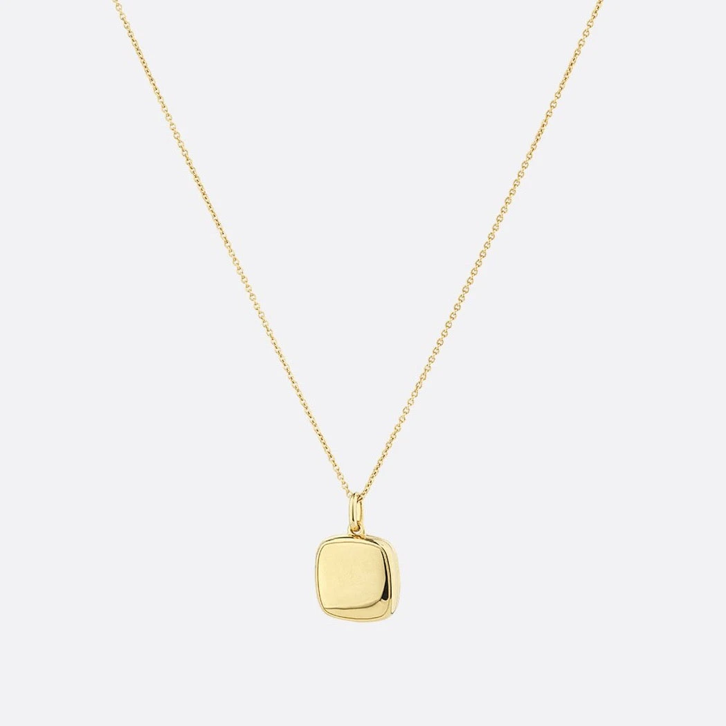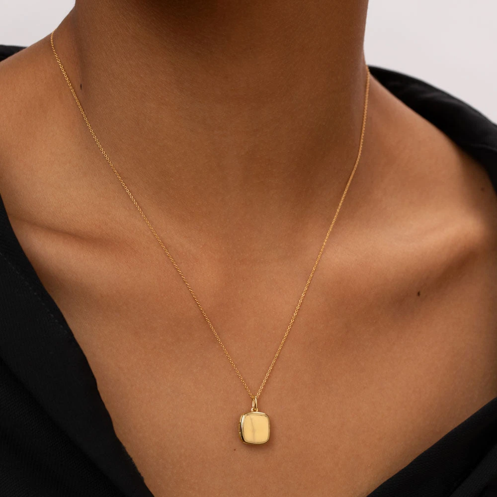 The square locket necklace in gold is a timeless necklace for every occasion. Wear this locket by itself or layered with multiple chains, this dreamy engravable square locket is crafted 18k fine gold plating, with a sterling silver base. The perfect personalised jewellery gift for your wife, mum or friend, this square gold locket necklace can hold two pictures inside. Also available in silver.