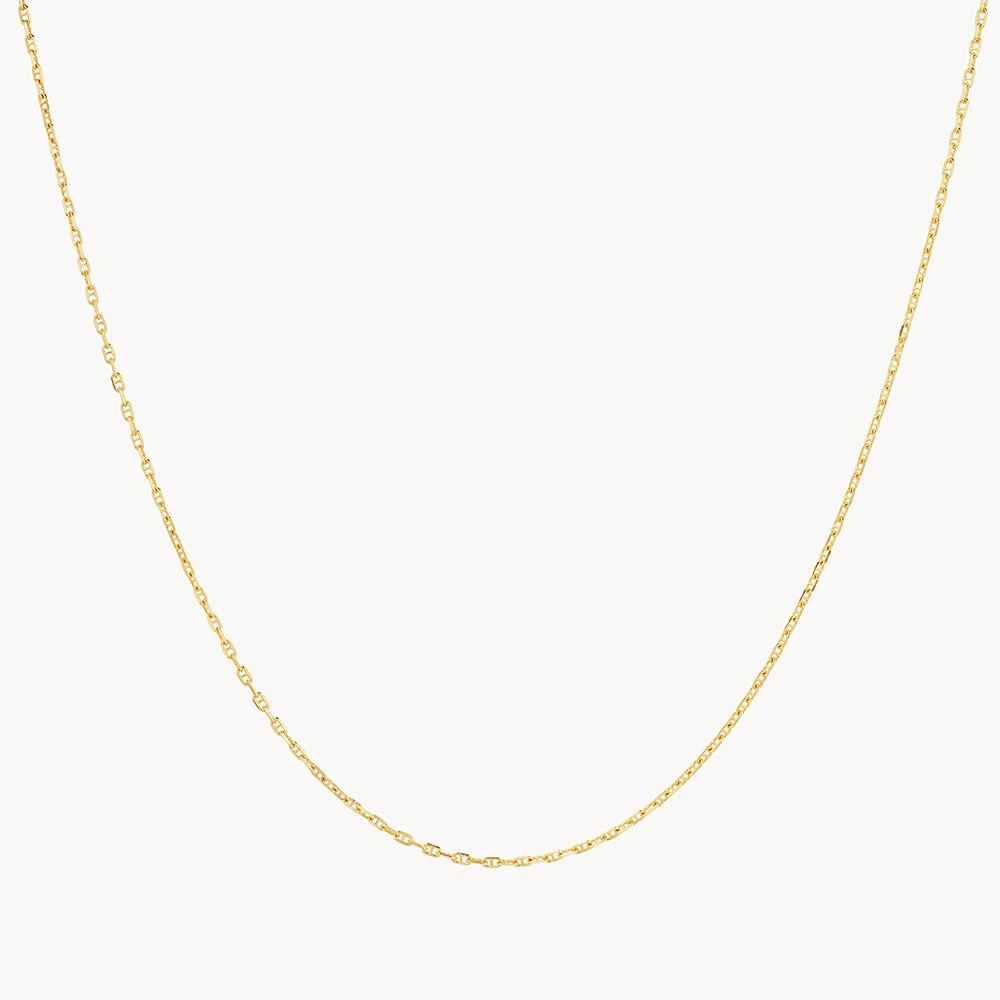 Classic and versatile, like that favourite white tee you can’t imagine life without. A plain gold chain that’s far from basic, our fine anchor chain necklace is crafted in 18k fine gold plating for a lustrous look that will effortlessly elevate any outfit. Wear it alone for that barely-there look, or add it to your gold necklace layers.