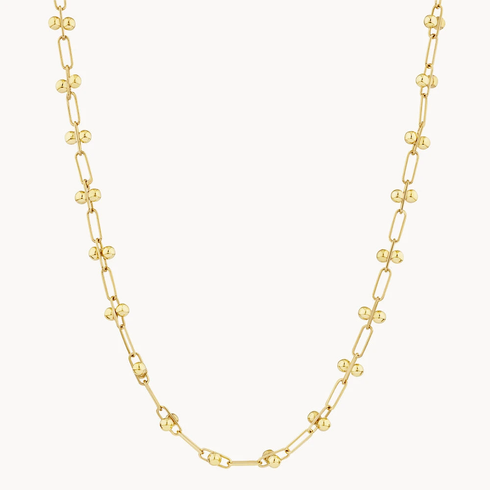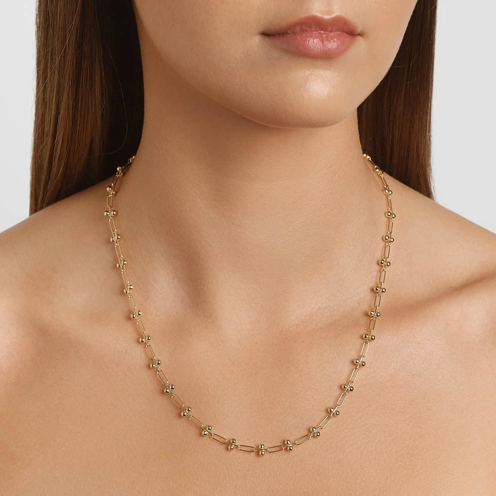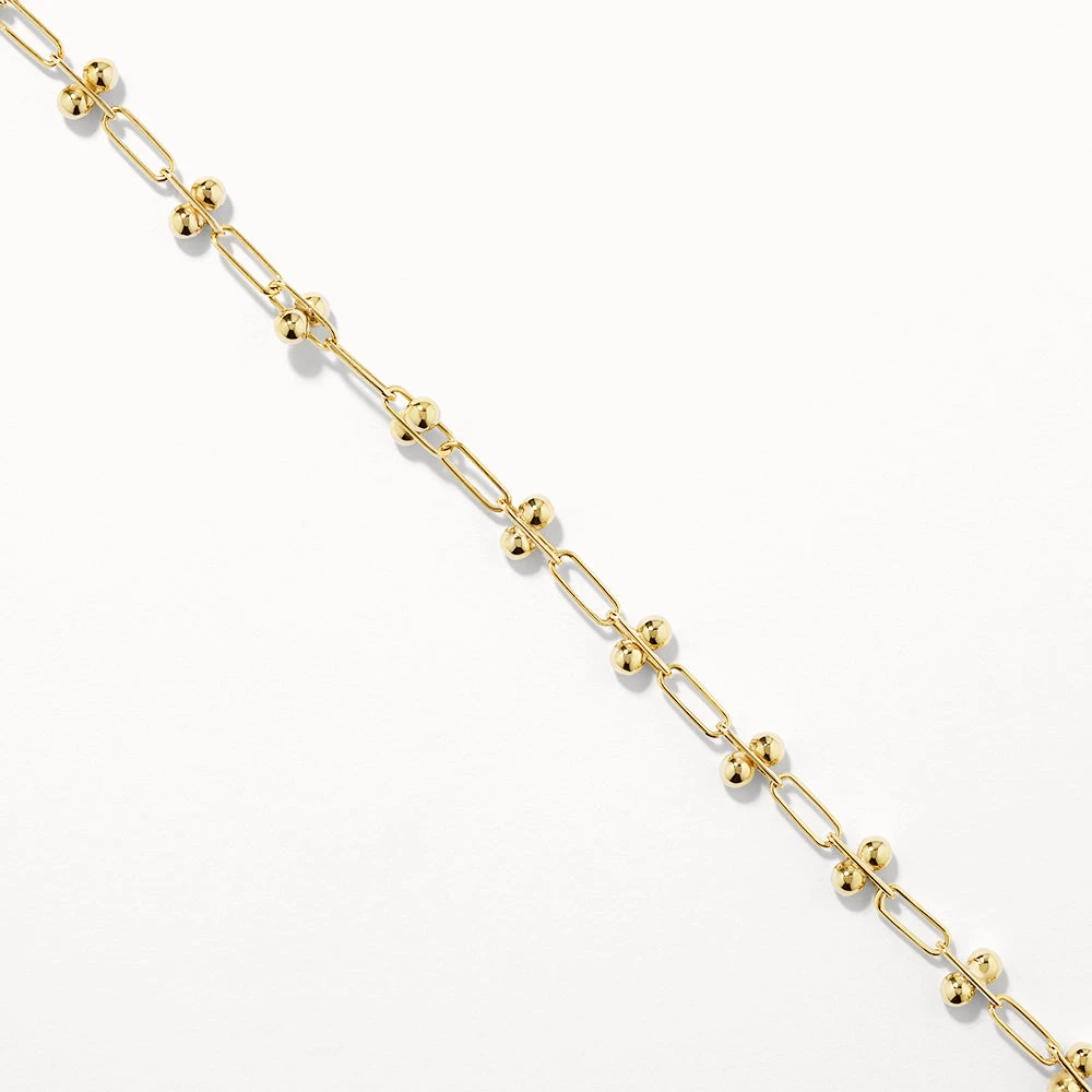 A fine, everyday style with added interest and texture. This beaded gold paperclip necklace features a 55cm length, giving you ultimate versatility for styling. With an intricate design featuring berma beads and crafted in 18k fine yellow gold plating over a sterling silver core, keep things chic and wear the fine bauble paperclip chain necklace alone, or layer with clashing textures for an eclectic, detailed look.