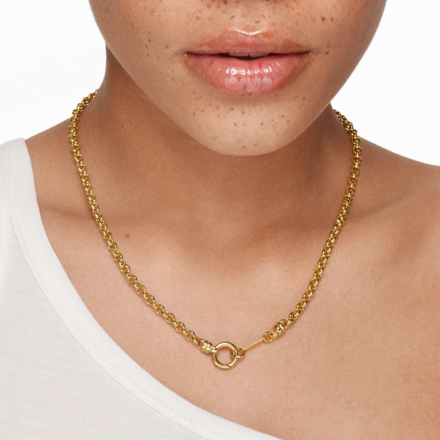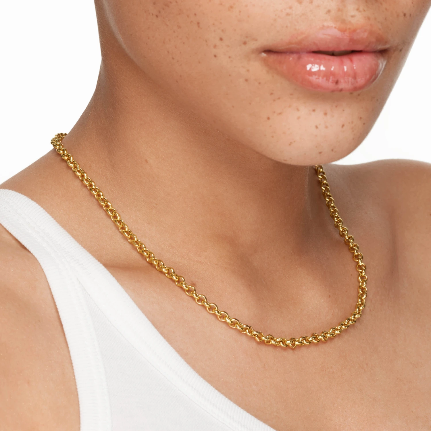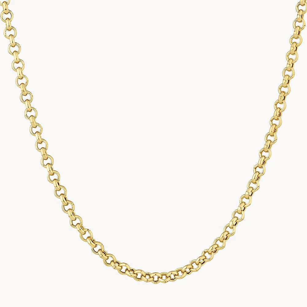 The timeless chain necklace that’s equivalent to your wardrobe-MVP jeans. This belcher chain necklace is a quintessential classic with the perfect fine width, so you can wear it alone for effortless vibes or layer with gold chains to build a statement look. Crafted in lustrous 18k fine gold plating, this gold chain necklace will be your new favourite.