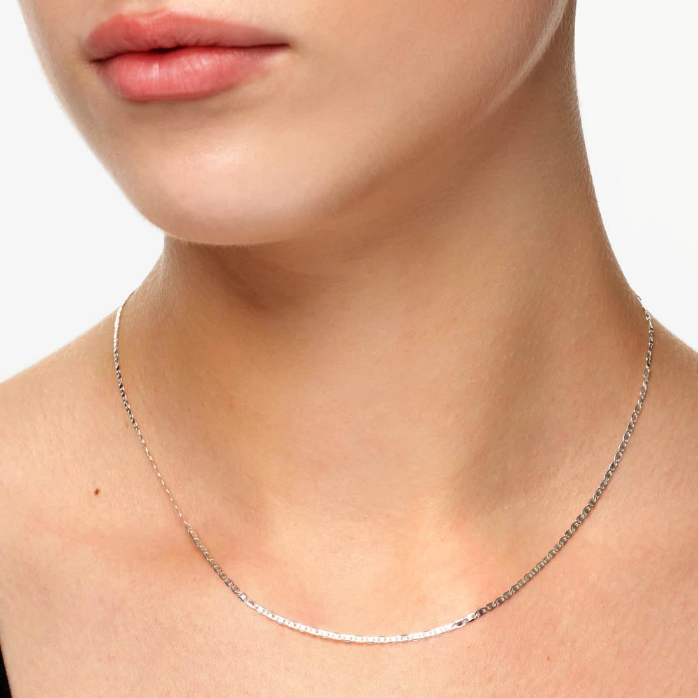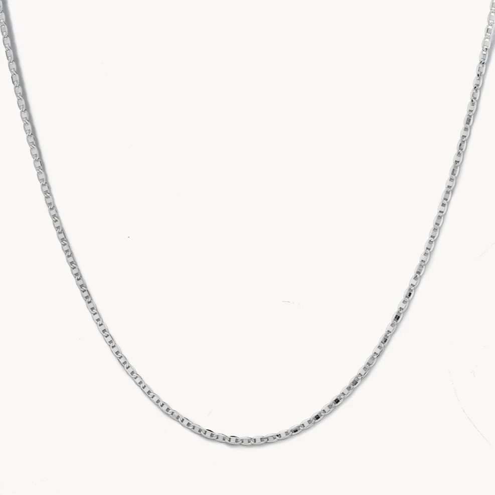 Classic and versatile, like that favourite white tee you can’t imagine life without. A plain, mid-weight silver chain that’s far from basic, our anchor chain necklace is crafted in 925 sterling silver for a look that will effortlessly elevate any outfit. Wear it alone for a subtle statement, or layer it with gold necklaces.