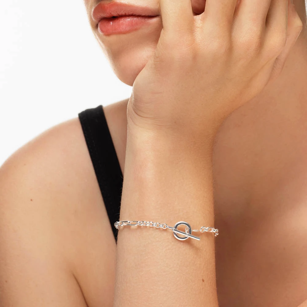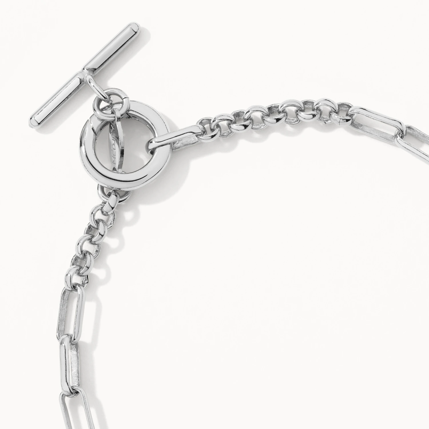 Lay a strong base for your every look with our fundamental fob chain bracelet. This must-have, timeless silver chain bracelet is available in an 18cm or 21cm length, finished with a T bar fob closure. Crafted in 925 sterling silver, it can be worn alone for a simple statement or stacked with silver bangles and bracelets to create your unique look. The two size options allow this unisex piece to be worn as either a women’s or men’s bracelet.