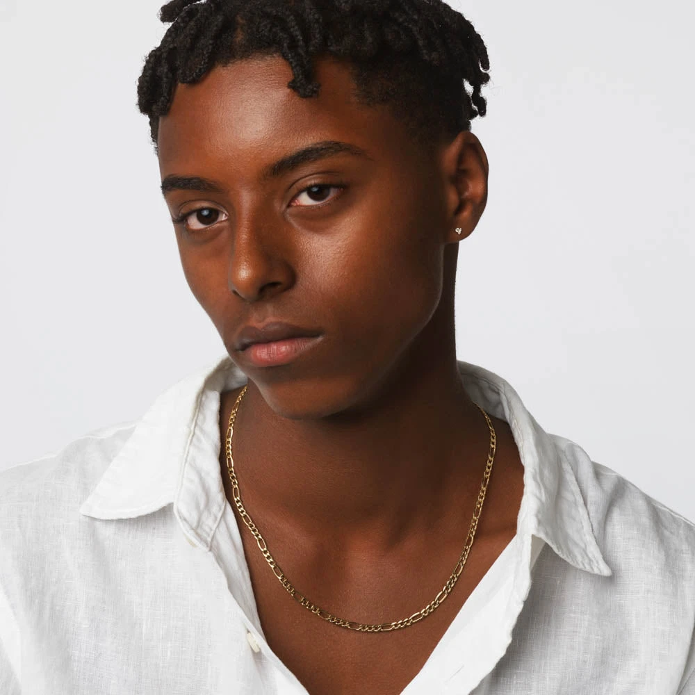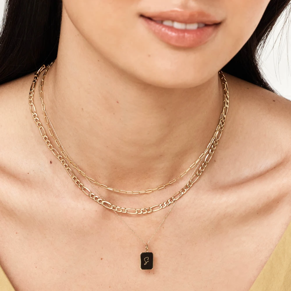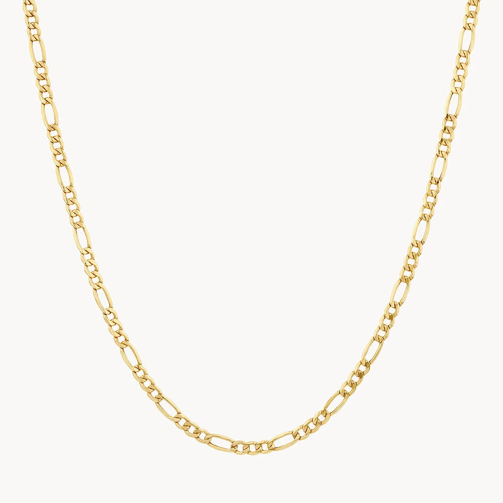 This classic gold figaro chain necklace made in 10k Gold adds texture for a contemporary look. Crafted in 10k Gold, we love to layer this 50cm figaro gold chain with a diamond letter necklace or laboratory grown diamond necklace.
