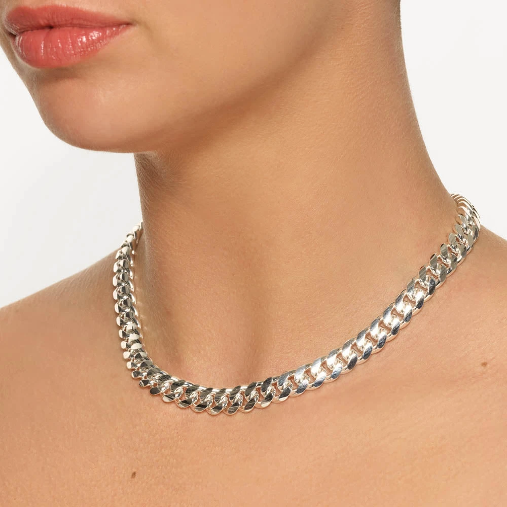 The silver statement necklace that’s *actually* always in style. This chunky chain necklace is crafted in 925 sterling silver with a bold, flat curb design available in a 45cm or 55cm length. Pair this impactful curb chain with jeans and a tee for elevated casual style, or with a dress to add unexpected edge. Whatever you wear it with, this silver statement necklace is sure to be your new favourite.