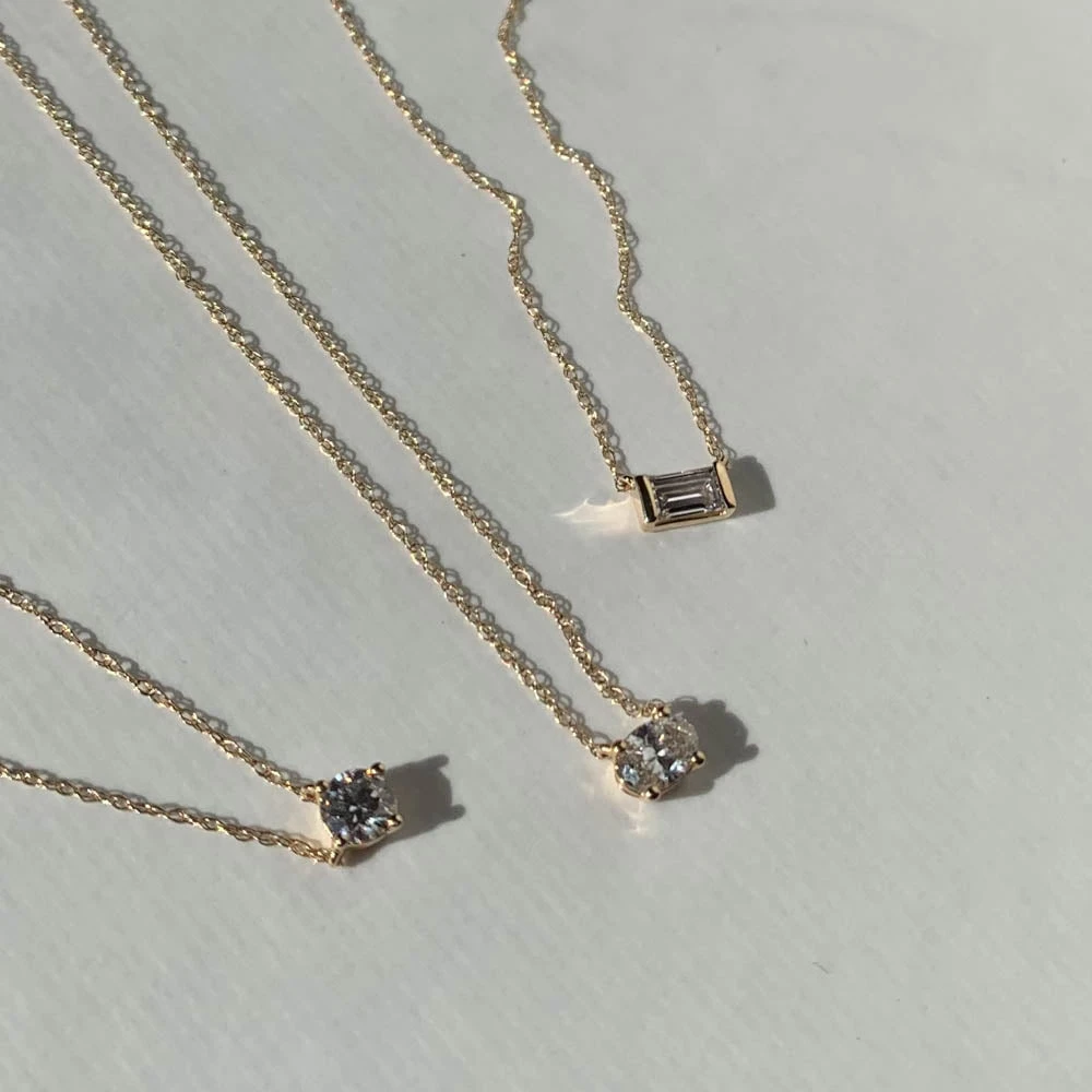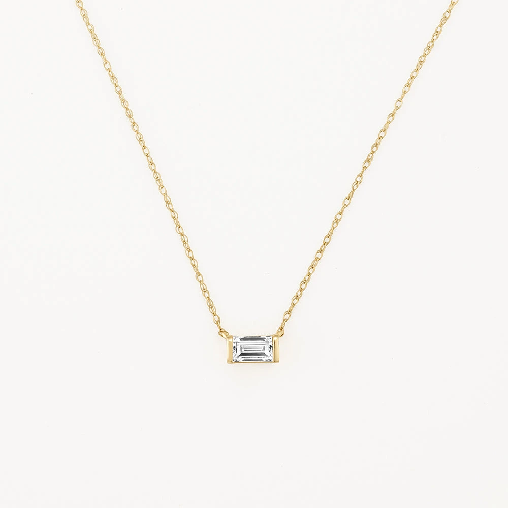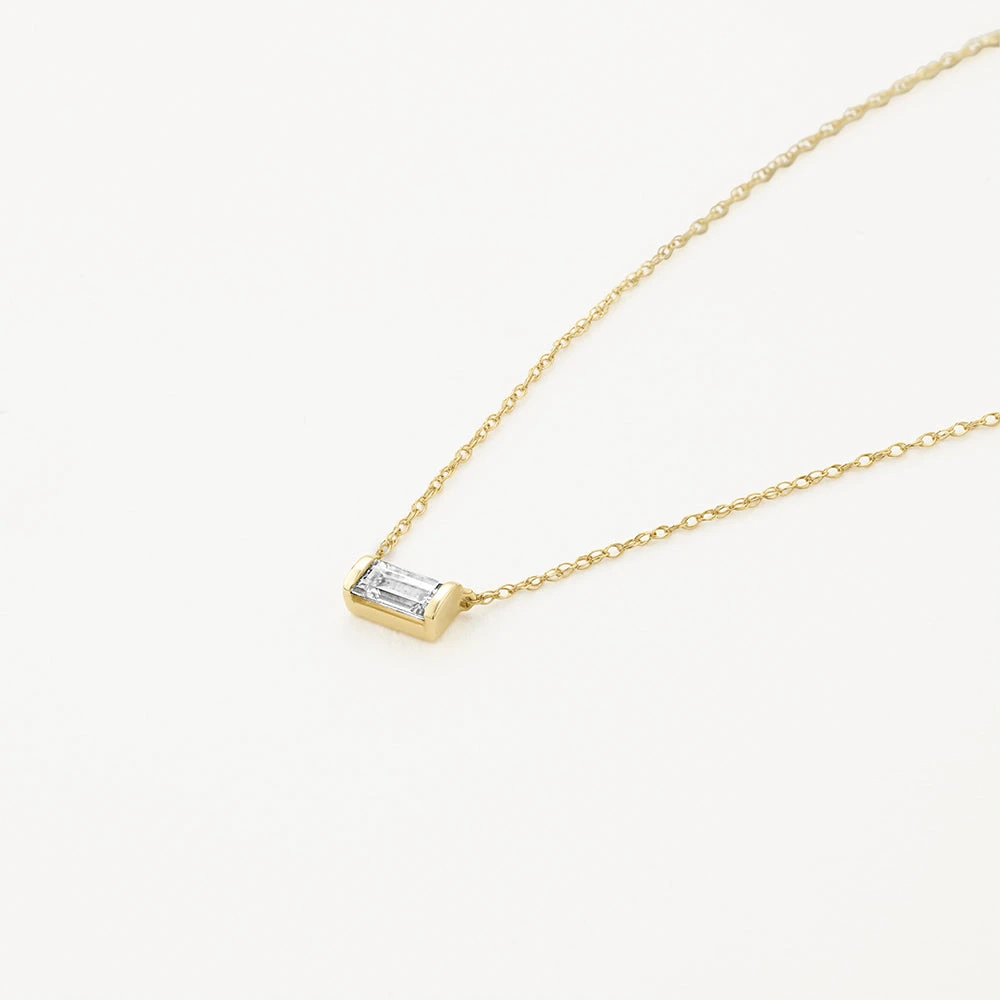 Just the piece for effortless elegance, every single day. This 10k gold solitaire 46cm necklace features a dainty 6.5mm 0.27ct laboratory-grown diamond in a chic baguette shape. It shines brightly alone, but also layers beautifully with your favourite gold chains.