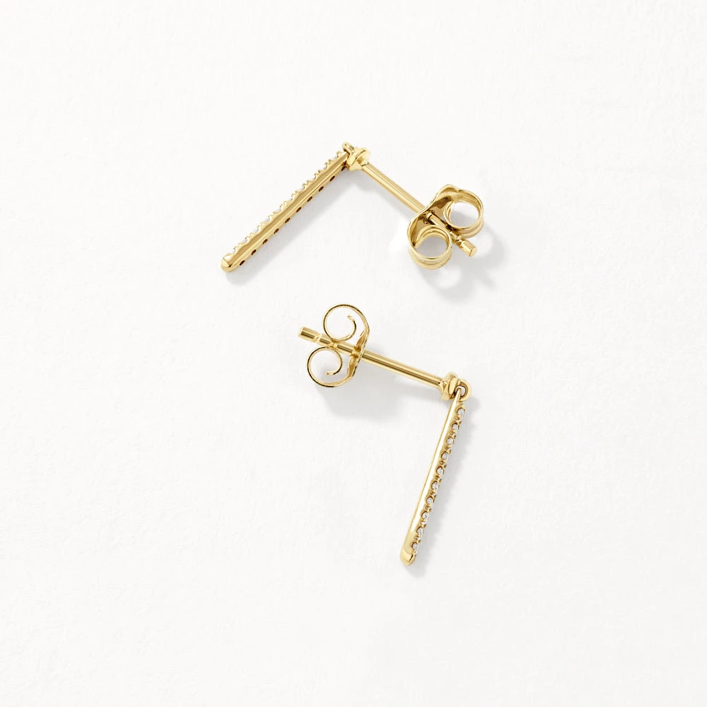 For contemporary elegance, these laboratory-grown diamond and gold dangle earrings are your must-have. Worn as a stud, these drop earrings feature a a fine bar design adorned with a total of 0.04 carat of laboratory-grown diamonds, bringing movement and radiance to your look. Crafted in 10k yellow gold.