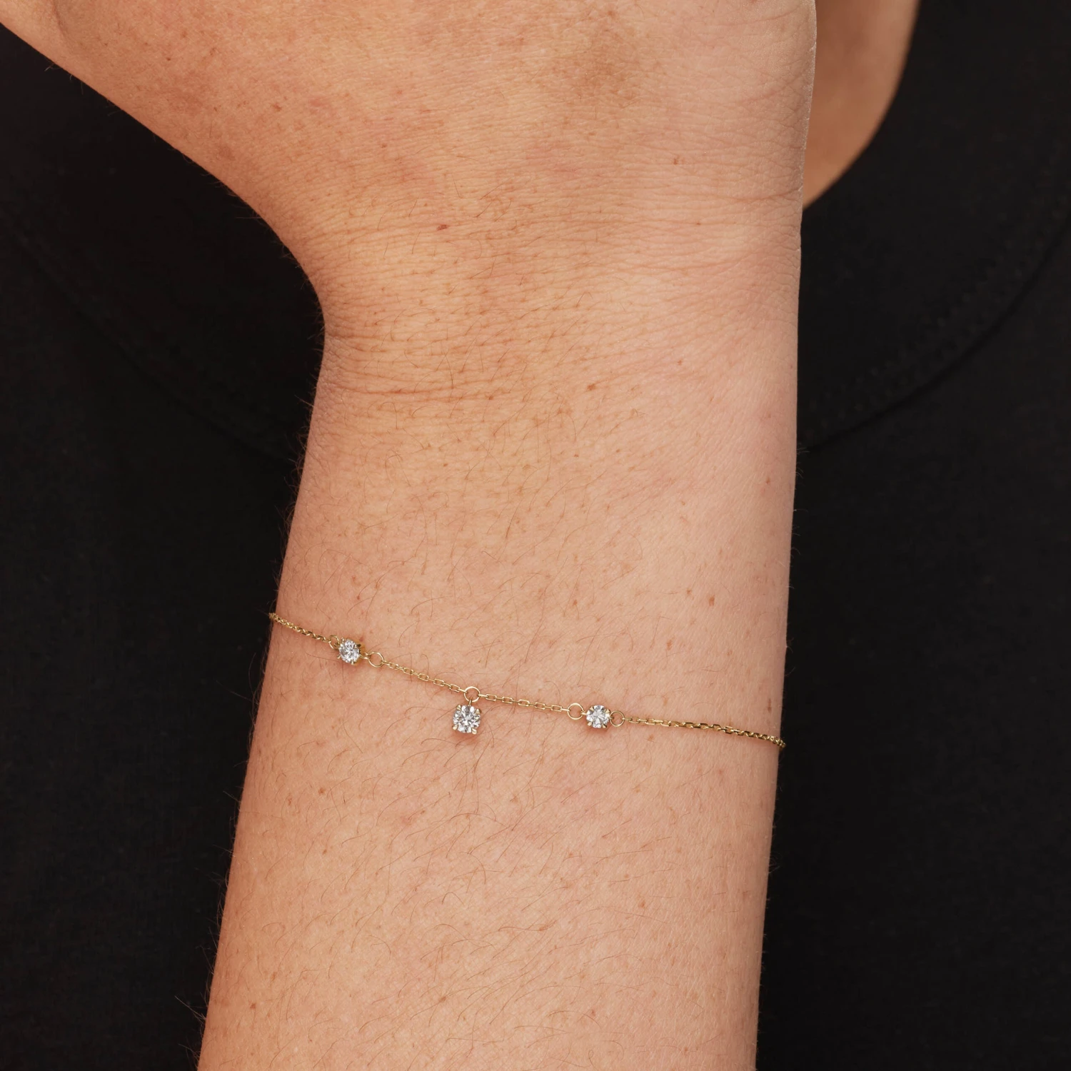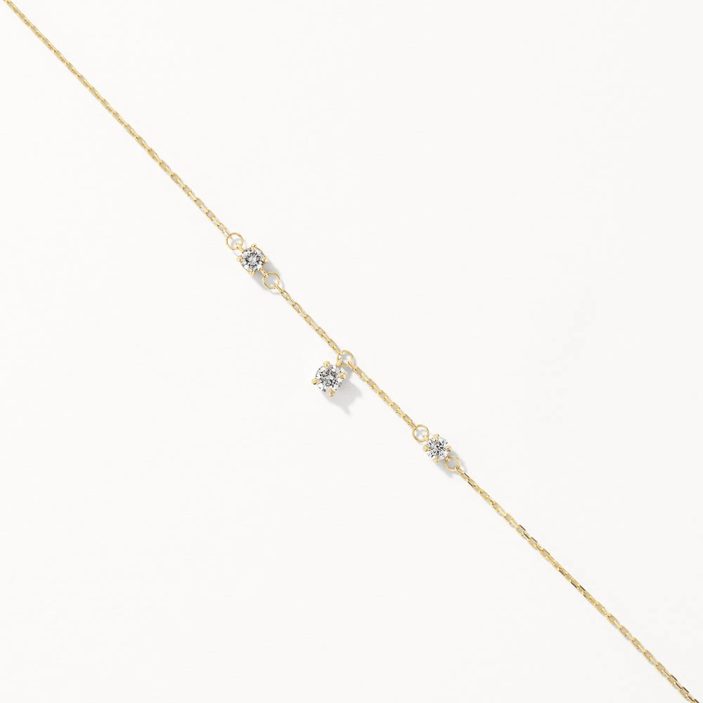 Add elegant shimmer to your collection with this laboratory-grown diamond bracelet. This droplet bracelet features a fine, 10k gold chain with two stationary and one floating laboratory-grown diamond, for light-catching movement. Adjustable from 17cm – 19cm in length.