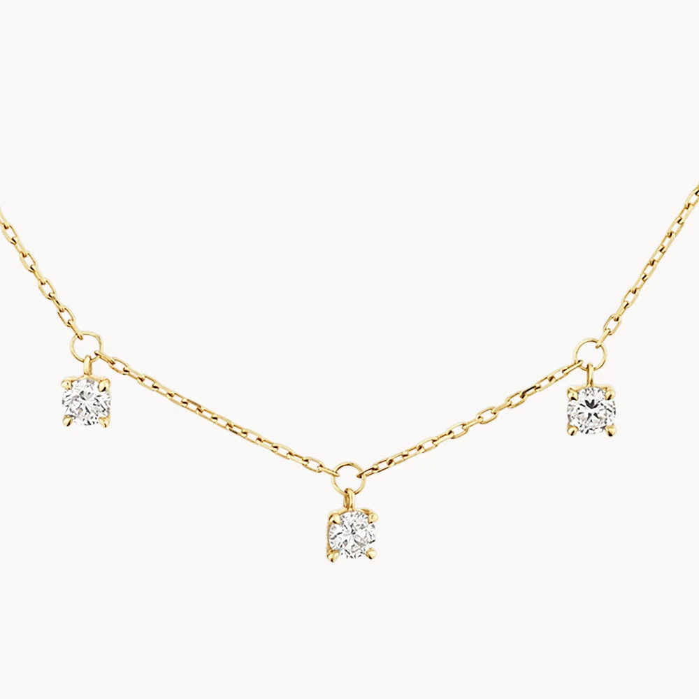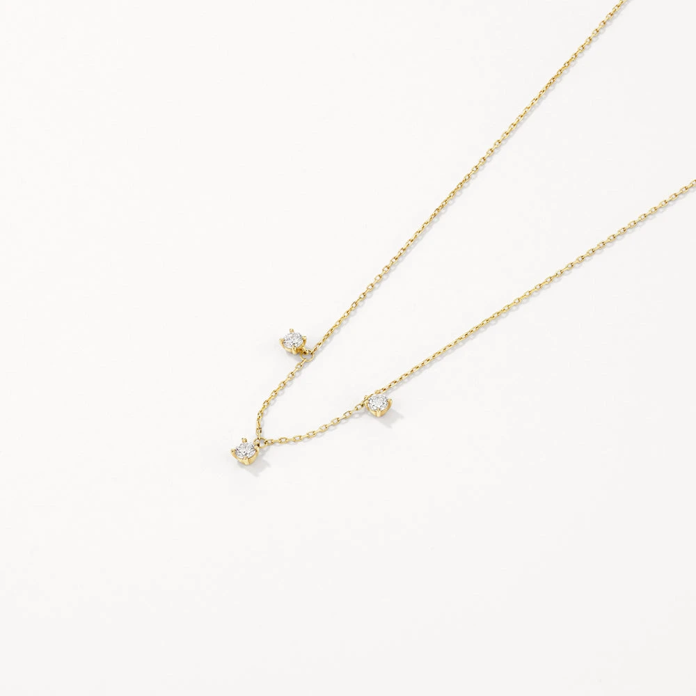 A uniquely elegant droplet necklace to elevate every look. This stunning necklace features a fine, 10k gold chain with three floating laboratory-grown diamonds, for light-catching movement. With a 45cm length, wear it alone for luxe minimalism or add to your gold necklace layers.