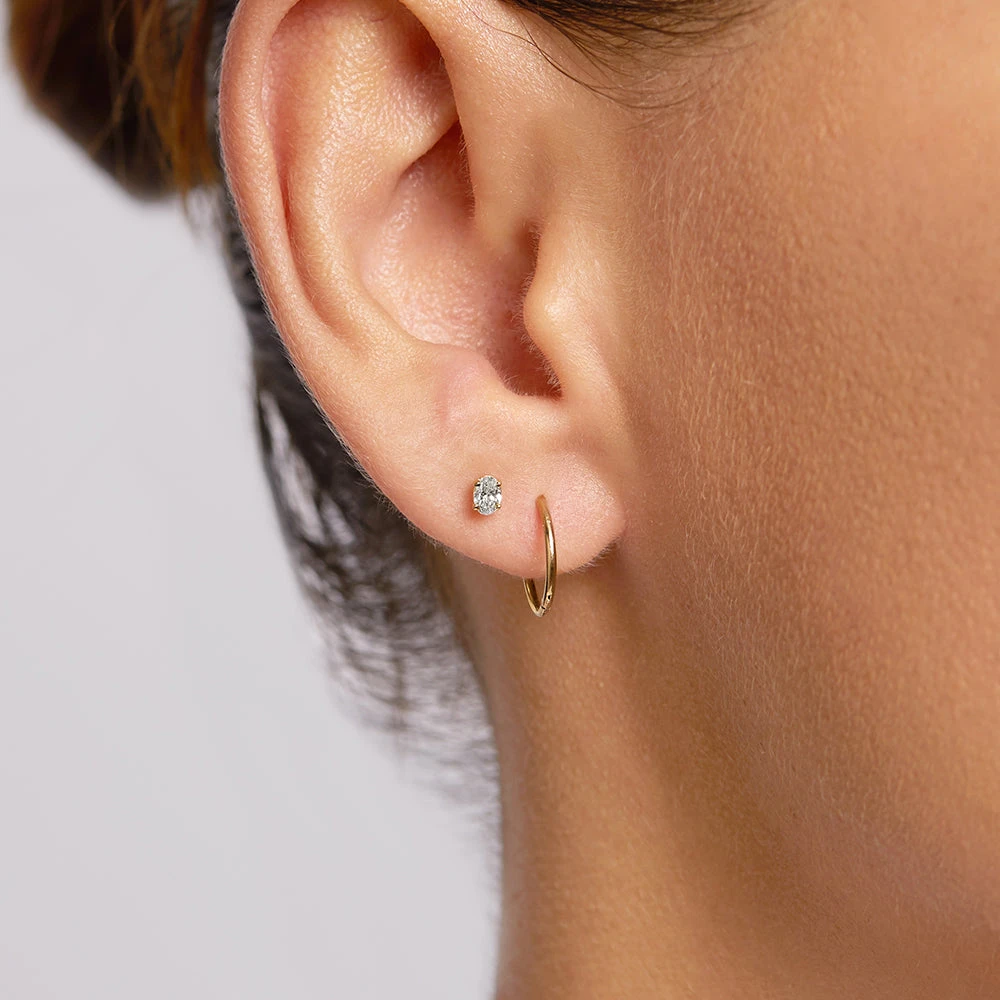 Timeless earrings with a contemporary touch. These laboratory-grown diamond earrings update the classic solitaire stud with an oval cut. Featuring 0.26 carat total weight of laboratory-grown diamonds set in 10k solid gold, these studs are destined for your forever-collection.