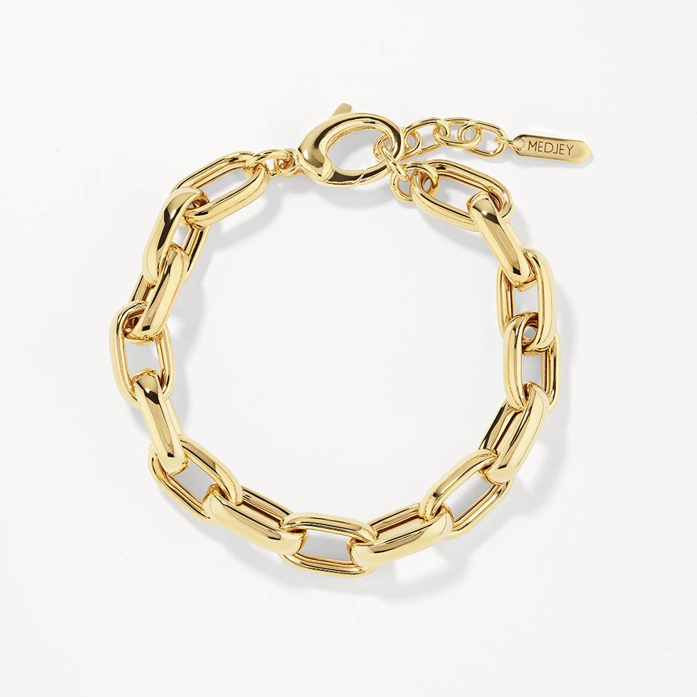 The statement gold chain bracelet to take your wrist game to the next level. Our maxi paperclip chain bracelet crafted in 18k fine gold plating is a trending, bold piece with enduring style. Featuring a gold paperclip chain with a 24cm length (adjustable to 21cm), wear it alone for an effortless statement or stack with gold bangles.