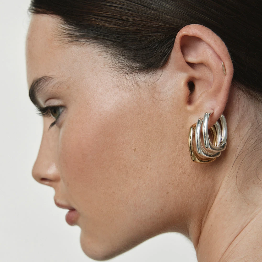 Your staple gold hoop earrings are updated with a contemporary square edge in these must-have earrings. Crafted in 18k fine gold plating, these square hoop earrings have a 19.50mm diameter, perfect for a statement look. Wear these large hoop earrings to elevate every look, worn alone or stacked with classic hoops for contrast.