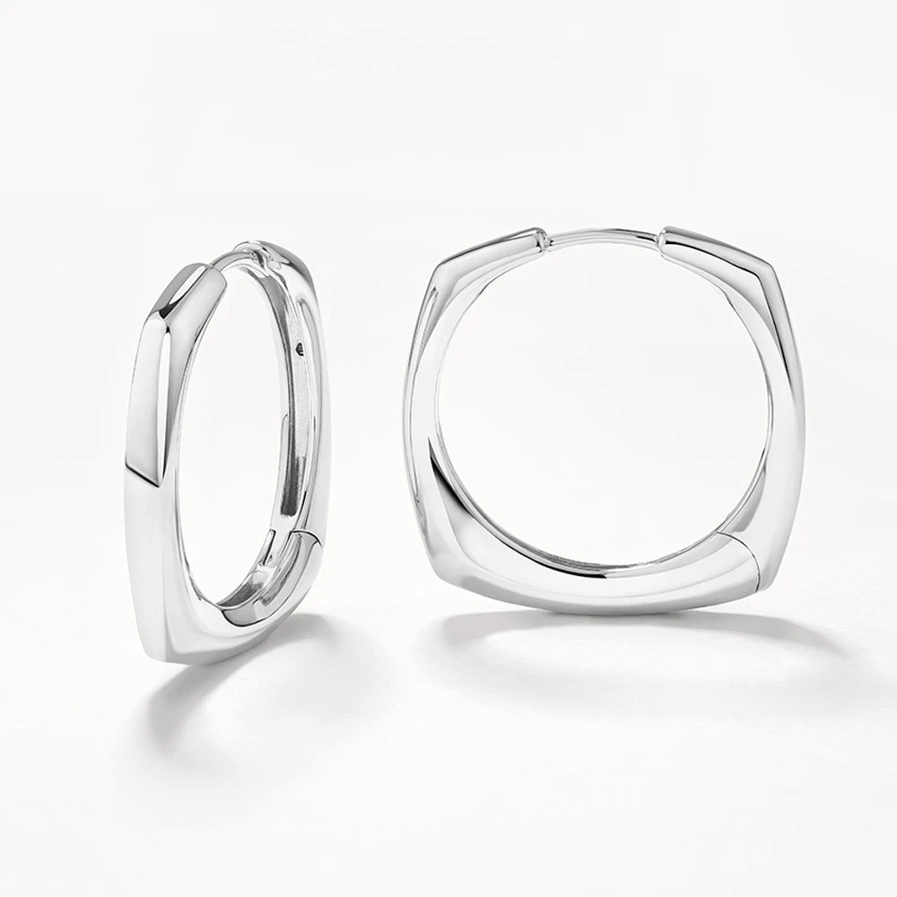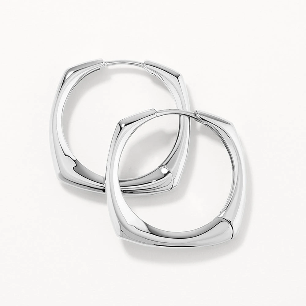 Your staple silver hoop earrings are updated with a contemporary square edge in these must-have earrings. Crafted in 925 sterling silver, these square hoop earrings have a 19.50mm diameter, perfect for a statement look. Wear these large hoop earrings to elevate every look, worn alone or stacked with classic hoops for contrast.